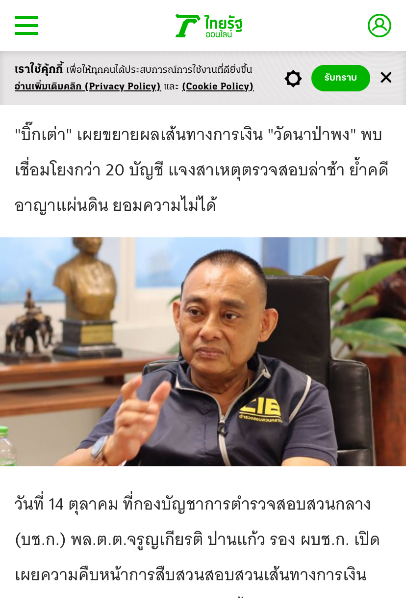 บิ๊กเต่า" เผยขยายผลเส้นทางการเงิน "วัดนาป่าพง" พบเชื่อมโยงกว่า 20 บัญชี แจงสาเหตุตรวจสอบล่าช้า ย้ำคดีอาญาแผ่นดิน ยอมความไม่ได้