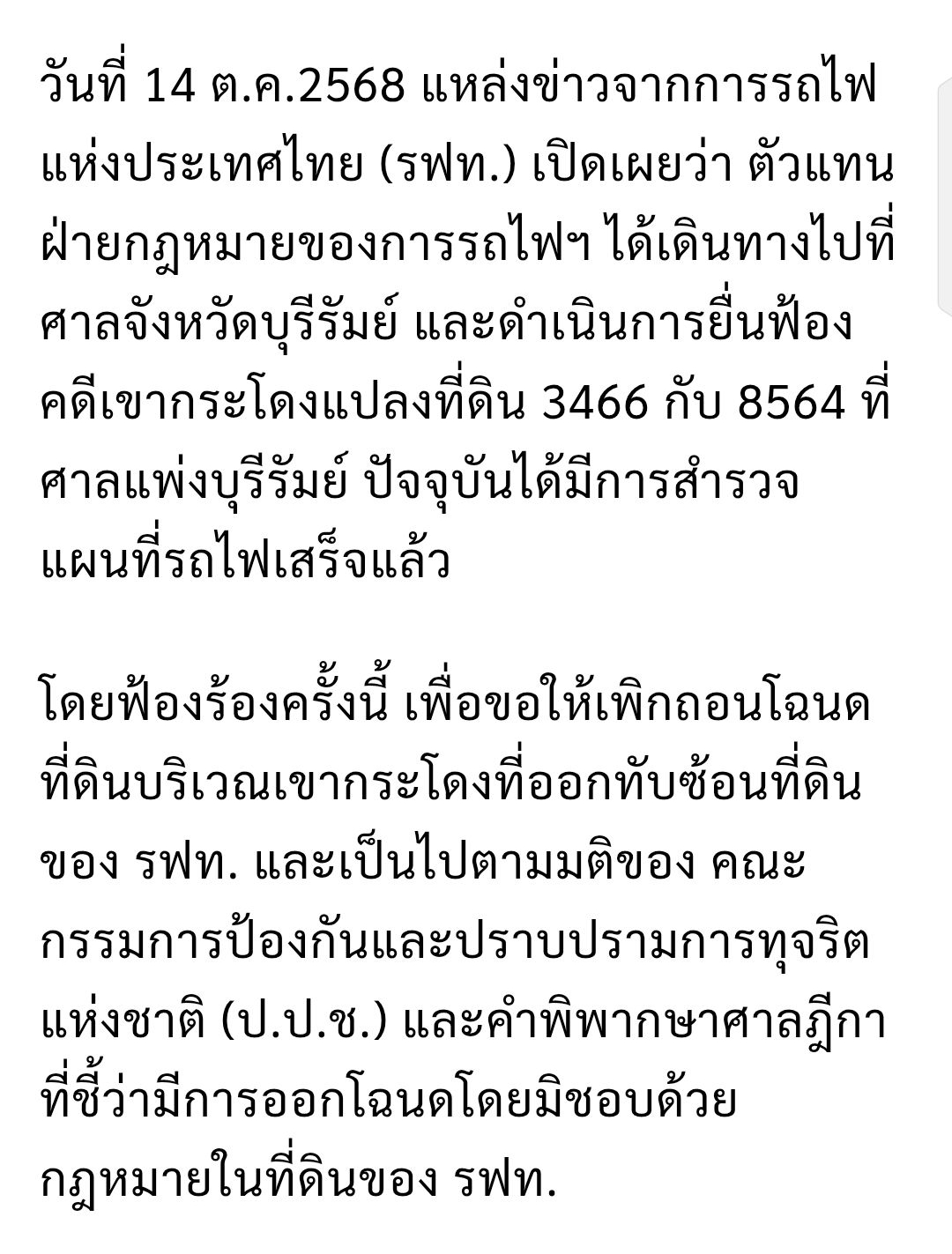 🚉 รฟท. ฟ้องศาล เพิกถอนโฉนด รุกเขากระโดง มีชื่อ ‘กรุณา ชิดชอบ-บ.ศิลาชัย’ ครอบครอง