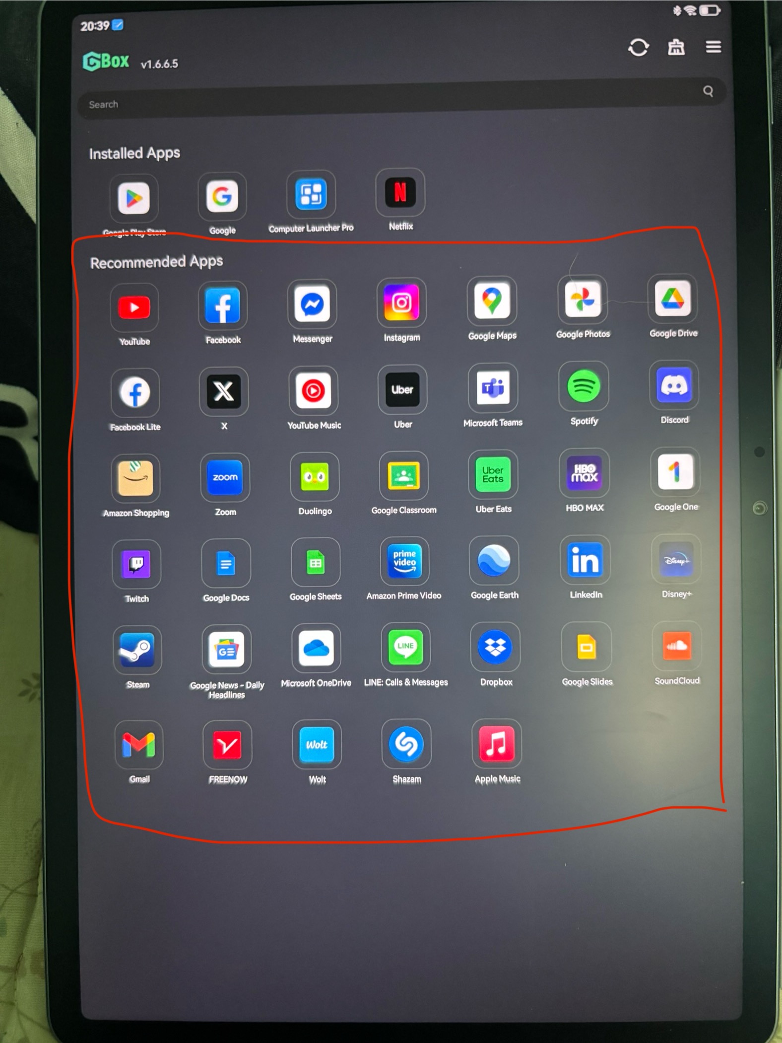 พึ่งซื้อ Matepad 11.5มา แล้วใช้Gboxโหลดแอพ ตามที่เห็นเขาสอน และแนะนำให้กด create shotscut เพื่อให้ไอคอนแอพออกมาอยู่ด้านนอก แต่พอกดแล้วตอนแรกตัวplay storeออกมา พอไปโหลดแอพอื่นมาแล้วทำเหมือนกันไม่ได้ และไอคอน play store ก็หายจากหน้าหลัก แล้วก็เอาแอพที่โหลดอะไรออกมาไม่ได้เลยนอกจากแอพที่แนะนำที่วงตามรูป รบกวขอคำแนพะนำเรื่องนี้ และการใช้งานอื่นๆด้วยนะคะ ขอบคุณล่วงหน้าค่ะ