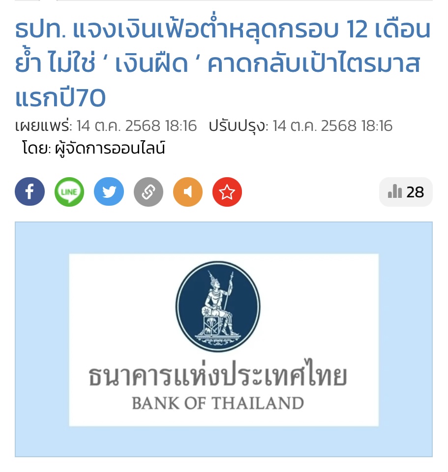 ล่าสุดเงินเฟ้อ ยังคง พลาดเป้าหมายอย่างต่อเนื่อง ควรยอมรับว่านโยบายการเงินผิดพลาด