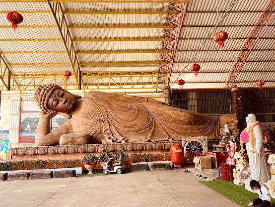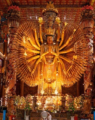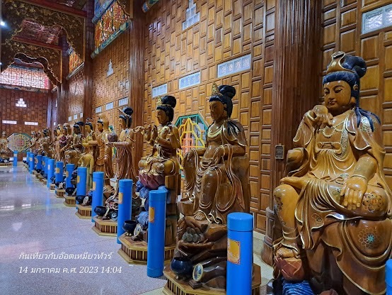 แต่ก็ต้องแวะสักการะสิ่งศักดิ์สิทธิ์เสียหน่อยตามธรรมเนียมของนักท่องเที่ยวไทยที่ดี คือไปไหว้เจ้าแม่กวนอิม 1000 มือสี่ทิศที่วิหารเมตตาธรรมโพธิญาณ ซึ่งเป็นวัดมหานิกายจีน ณตำบลหนองหญ้า อำเภอเมือง เป็นเจ้าแม่องค์ใหญ่ ที่สลักจากไม้สวยงามอลังการบานเบิก โถงทางเดิน ด้านข้างยังมี เจ้าแม่กวนอิมปางต่างๆสลักจากไม้หอมอีก 100 กว่าปางในขนาดย่อมลงมาอีกด้วย และยังมีอีกองค์หนึ่งขนาดมหึมาที่ยังสลักไม่เสร็จ แค่ฐานก็ใหญ่ยักษ์แล้ว นอกจากนั้นก็มีวิหารแบบจีนอีกหลังกำลังก่อสร้างอยู่โดยจะใช้หินปูพื้นนำเข้าจากเมืองจีน เป็น ongoing project ที่ไม่รู้ว่าจะเสร็จเมื่อไหร่ คล้ายๆวิหาร Sagrada Familia ของ Gaudi ที่ Barcelona ที่ผ่านมากว่า 100 ปีแล้วก็ยังไม่เสร็จเสียที แค่นี้ก็พอหอมปากหอมคอสำหรับการท่องเที่ยววันนี้นะคะ