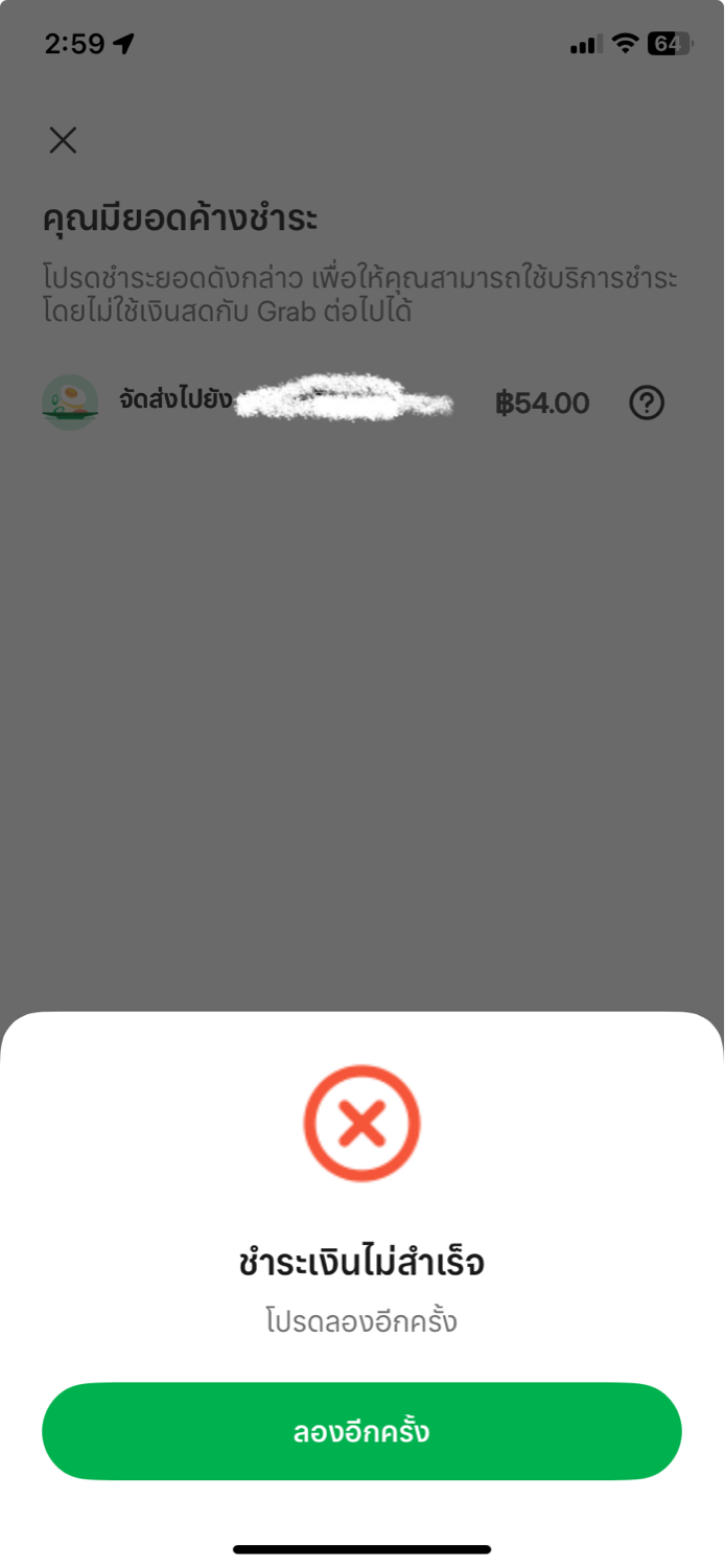 จ่ายยอดค้างชำระใน Grab ไม่ได้!!