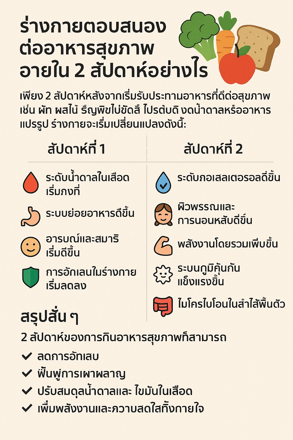 “ร่างกายตอบสนองต่ออาหารสุขภาพภายใน 2 สัปดาห์อย่างไร”