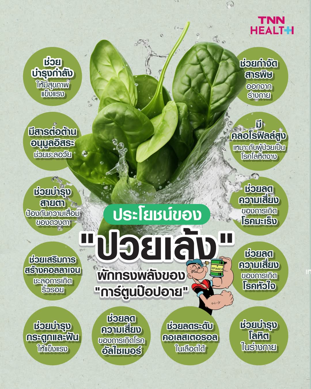 ประโยชน์ของ"ปวยเล้ง"ผักทรงพลังของ"การ์ตูนป๊อปอาย"