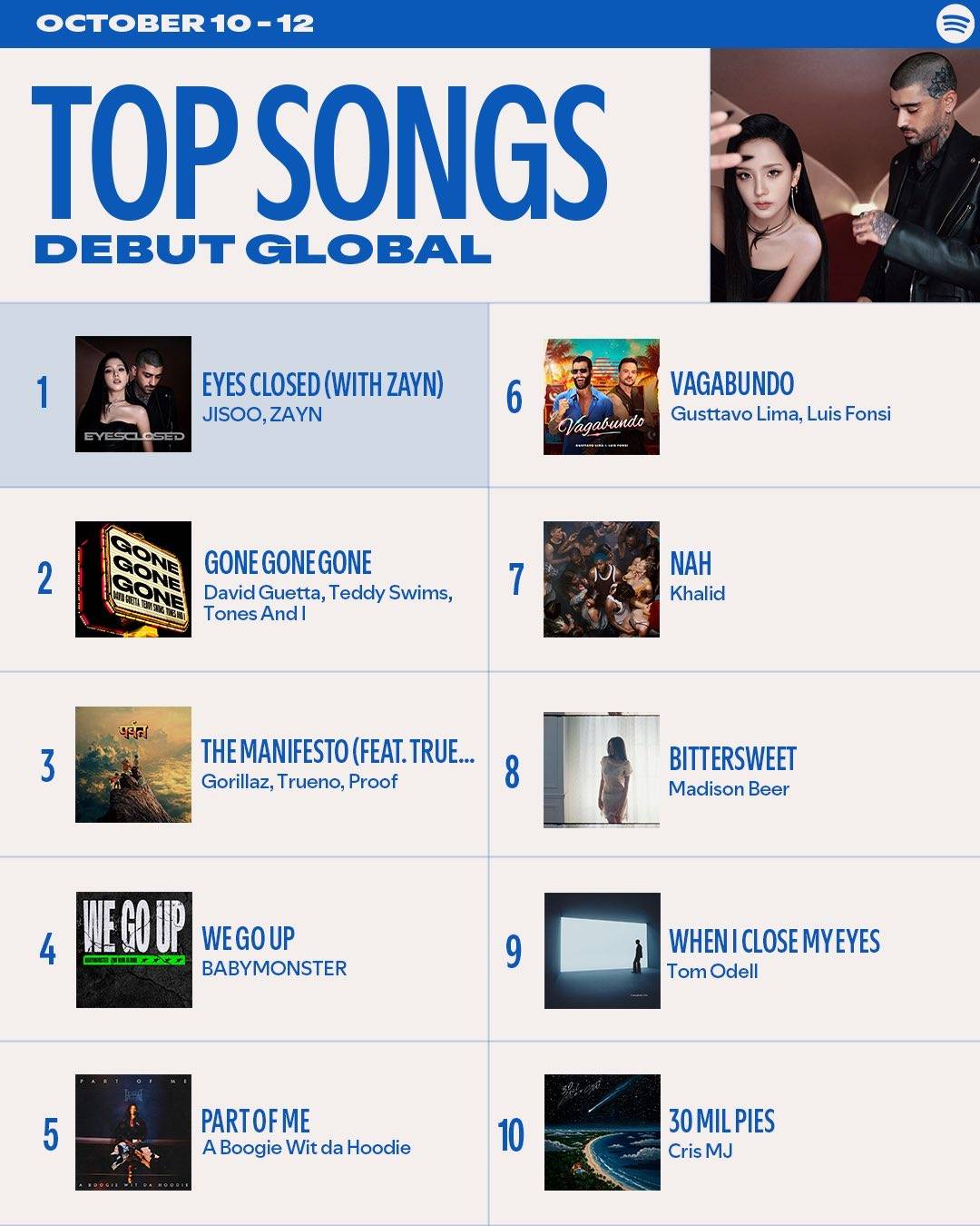 อยู่ในอันดับ 4 บน Spotify Top Songs Debut Global ได้รับความสำคัญจากทาง Spotify