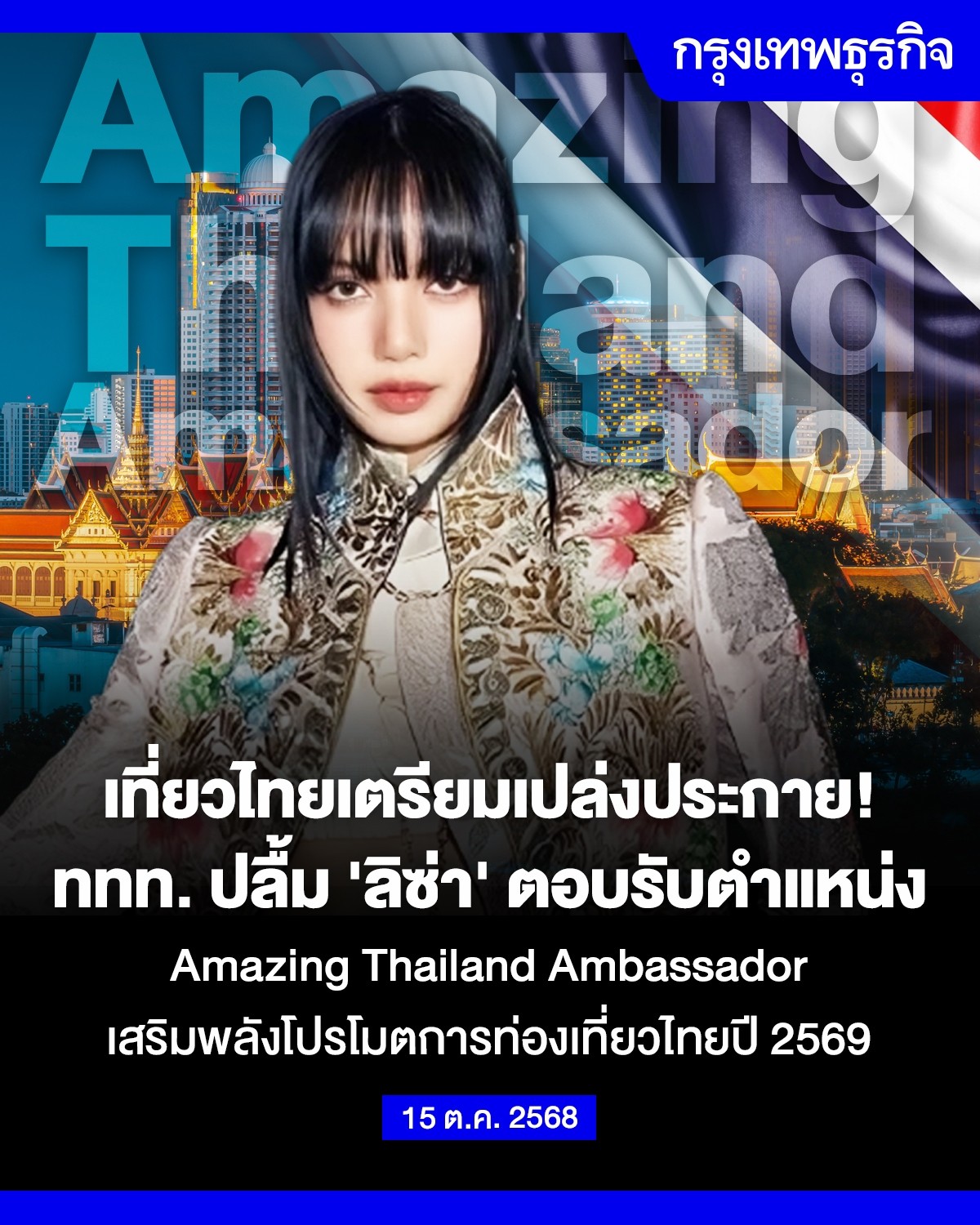 เที่ยวไทยเตรียมเปล่งประกาย! ททท. ปลื้ม 'ลิซ่า' ตอบรับตำแหน่ง Amazing Thailand Ambassador เสริมพลังโปรโมตการท่องเที่ยวไทยปี 2569