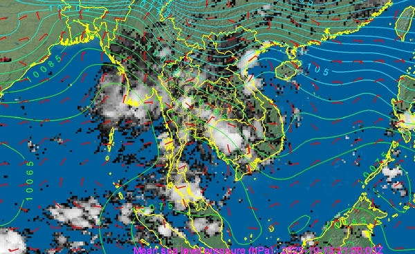 เนื่องจากคลื่นกระแสลมฝ่ายลมตะวันออกพัดนำความชื้นจากทะเลจีนใต้เข้าปกคลุมภาคอีสาน ภาคตะวันออก ภาคกลาง รวมทั้ง กทม.และปริมณฑล และภาคเหนือ