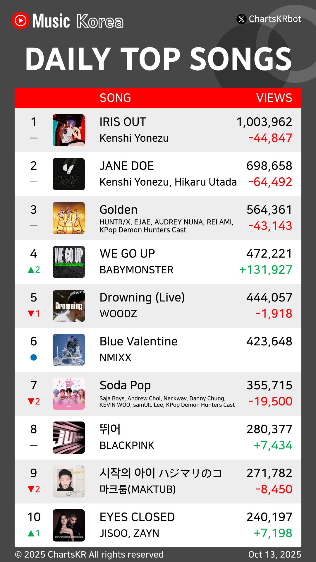 เพลง WE GO UP ทำ NEW PEAK ครั้งใหม่ขึ้นถึงอันดับ 4 บน YouTube Music South Korea Daily Chart สำหรับเคป๊อปเป็นรองเพลงเดียว