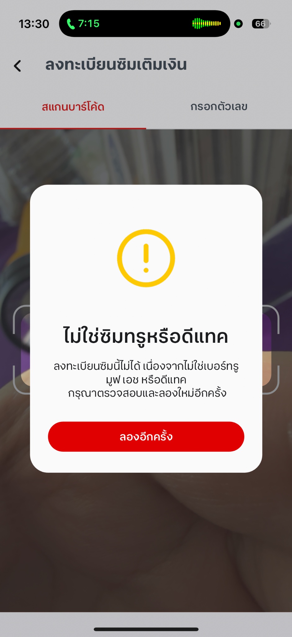 ลงทะเบียนแอพทรูไม่ได้ ทั้งที่เป็นซิมของทรู