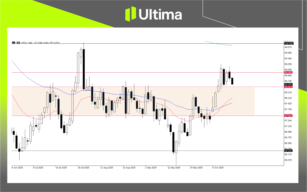 ดอลลาร์: ขณะนี้ค่าเงินดอลลาร์อยู่ระหว่างแรงดึงจากกระแสเงินลงทุนเพื่อป้องกันความเสี่ยงและความคาดหวังในการผ่อนคลายนโยบาย แม้ว่าดัชนีดอลลาร์สหรัฐฯ (USDX) จะไม่สามารถทะลุระดับ 99.00 ได้ แต่ยังคงยืนอยู่เหนือโซนสำคัญที่ 98.50 ซึ่งเป็นโครงสร้างขาขึ้นล่าสุด
