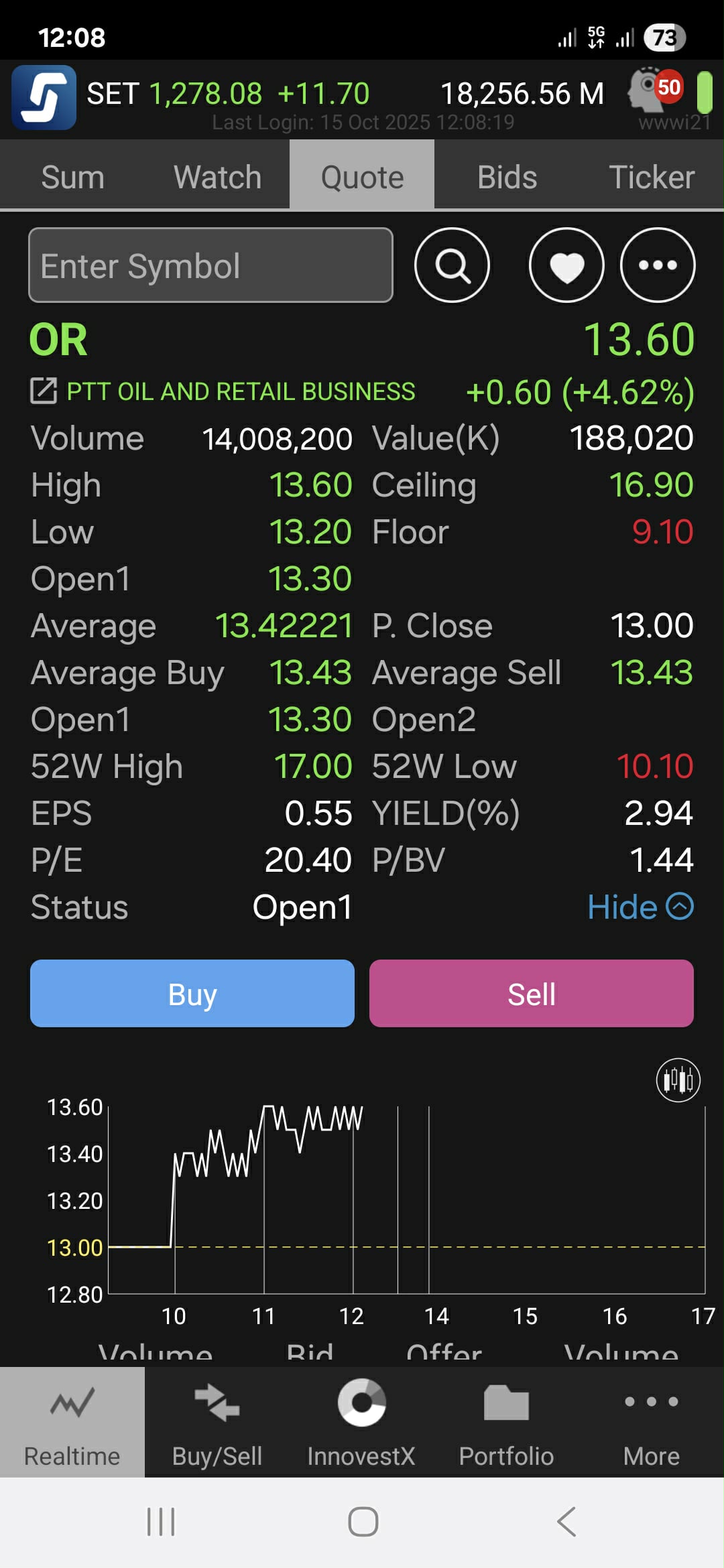 ราคาหุ้นORตอนนี้อยู่ที่ 13.6 บาท/หุ้น +4.6%ในวันเดียว