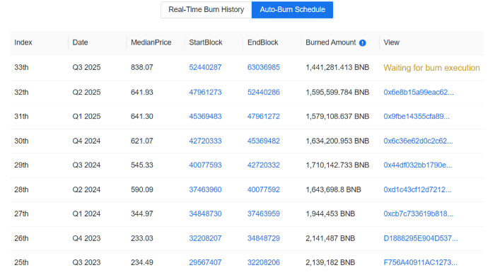 ภายในสองถึงสามวันนี้ คงมีการประกาศการเผาเหรียญ BNB ครั้งที่ 33 อย่างเป็นทางการออกมา แต่ข้อมูลที่จะ Burn ก็มีแสดงอย่างโปร่งใสอยู่แล้ว ว่ากำลังจะ Burn 1.44 ล้านเหรียญในรอบไตรมาสนี้
