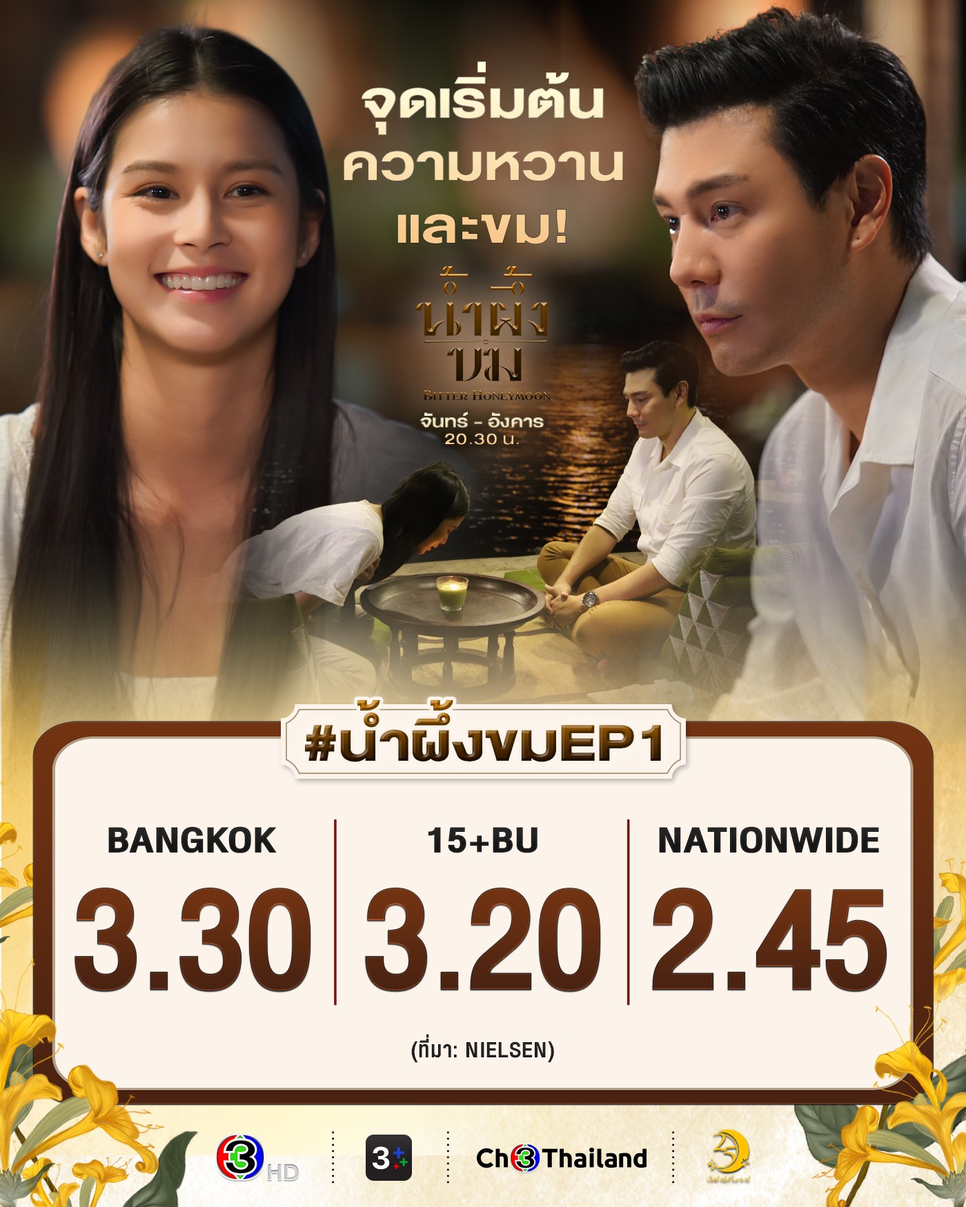 📌 เรตติ้งละคร "น้ำผึ้งขม" EP.1 ตอนแรก เรตติ้งกรุงเทพฯ 3.30 / เรตติ้งทั่วประเทศ 2.45 🎉