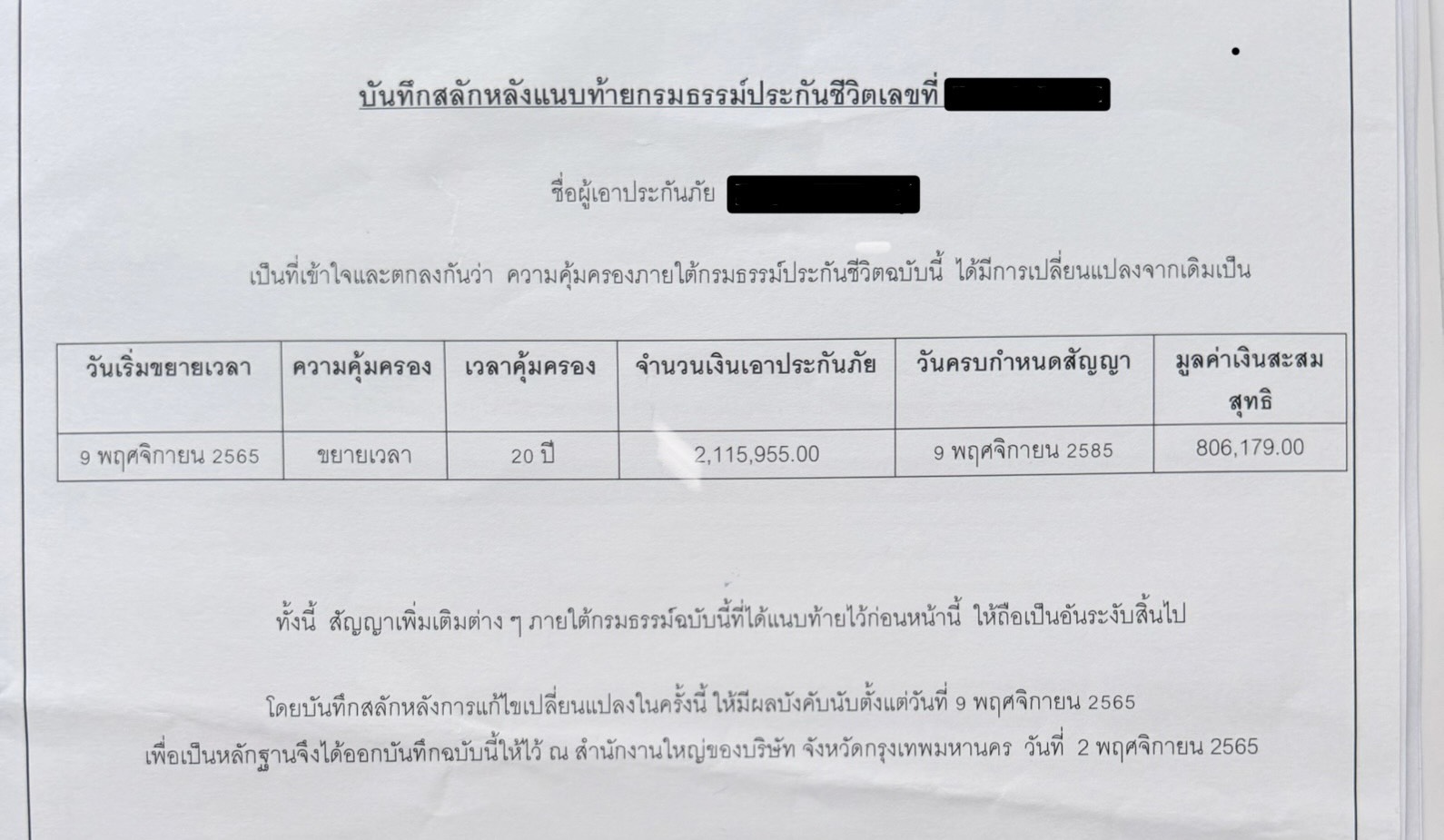 เพราะก่อนที่จะเปลี่ยนเป็นแบบขยายเวลาเมื่อปี 2565 ก็ได้สอบถามประกันก่อนแล้วค่ะ เค้าคำนวณให้