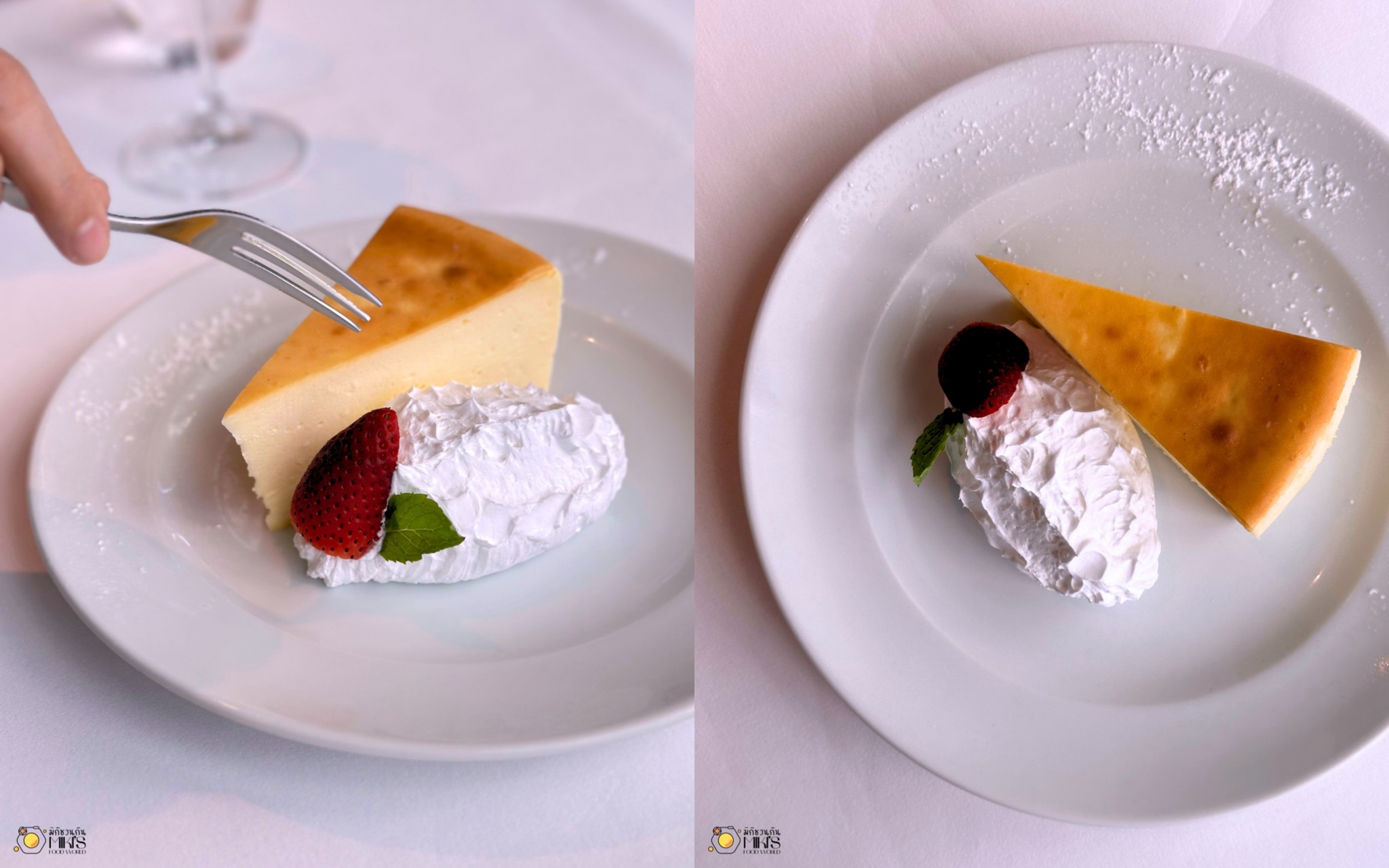 NEW YORK STYLE CHEESECAKE (460+) ชีสเค้กต้นตำรับแท้ๆ ที่เนื้อแน่น หอมมัน มีรสหวานอมเปรี้ยว พร้อมความนัวแบบที่ไม่เคยได้ลิ้มลองจากที่ไหน เสิร์ฟพร้อมครีมสดเนื้อเบา ปิดจบมื้อแบบสวยๆ