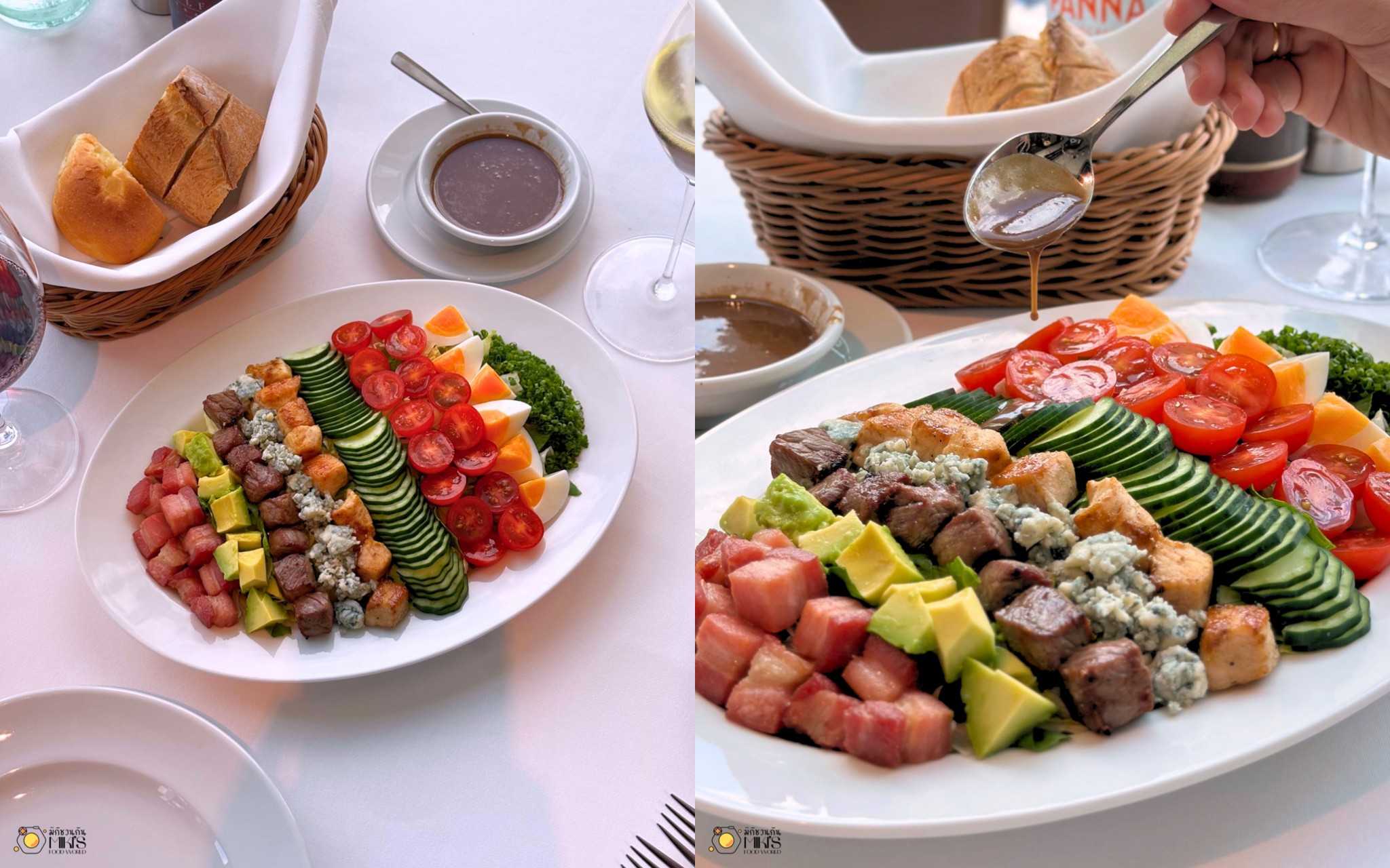 WOLFGANGS’ COBB SALAD (880+) สลัดที่ครบเครื่องในแบบ WOLFGANG’S style ยกสลัดระดับพรีเมียมมาอยู่ในชามเดียว ทั้ง USDA dry-aged beef ชิ้นพอดีคำ ที่นุ่มหอมกลิ่นเนื้อชัดๆ, เบคอนชิ้นหนาๆ รสเข้มข้น, อะโวคาโดเนื้อนุ่ม สุกกำลังดี, บลูชีสที่เพิ่มรสและกลิ่นชัดๆ พร้อมผักสดใหม่ กรุบกรอบ