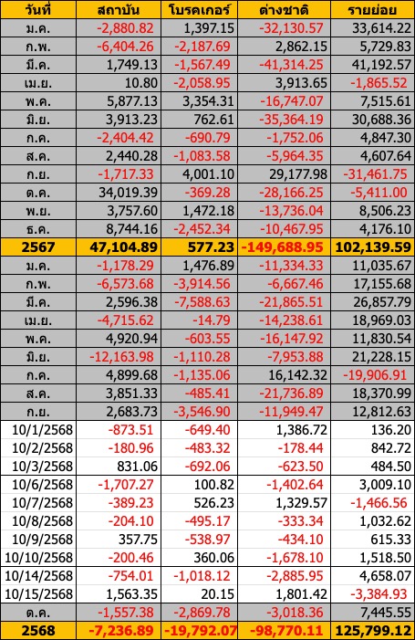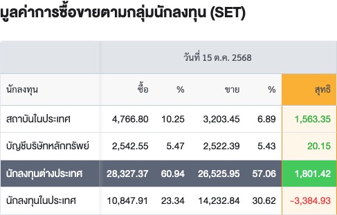 Sinthorn Summary 15/10/2568 : ต่างชาติซื้อสุทธิ 1,801.42 ลบ.