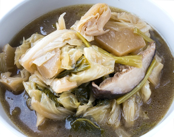 1. ตั้งน้ำเปล่าให้เดือด ใส่ผักกาดดองลงต้ม และตักขึ้นให้สะเด็ดน้ำ เตรียมไว้