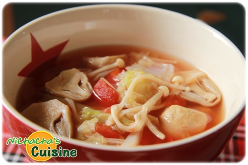มื้อเย็นสำหรับสาว ๆ ไดเอต ขอเสิร์ฟซุปผักเจสูตรจาก คุณ Am Nicha ใส่ผักกาดขาว กะหล่ำปลี มะเขือเทศ พริกหยวก เห็ดเข็มทอง เห็ดฟาง และเนื้อมะเขือเทศเข้มข้น ทำเสร็จแล้วดูเป็นอาหารเจที่กินแล้วสุขภาพดีเหมือนกันนะเนี่ย