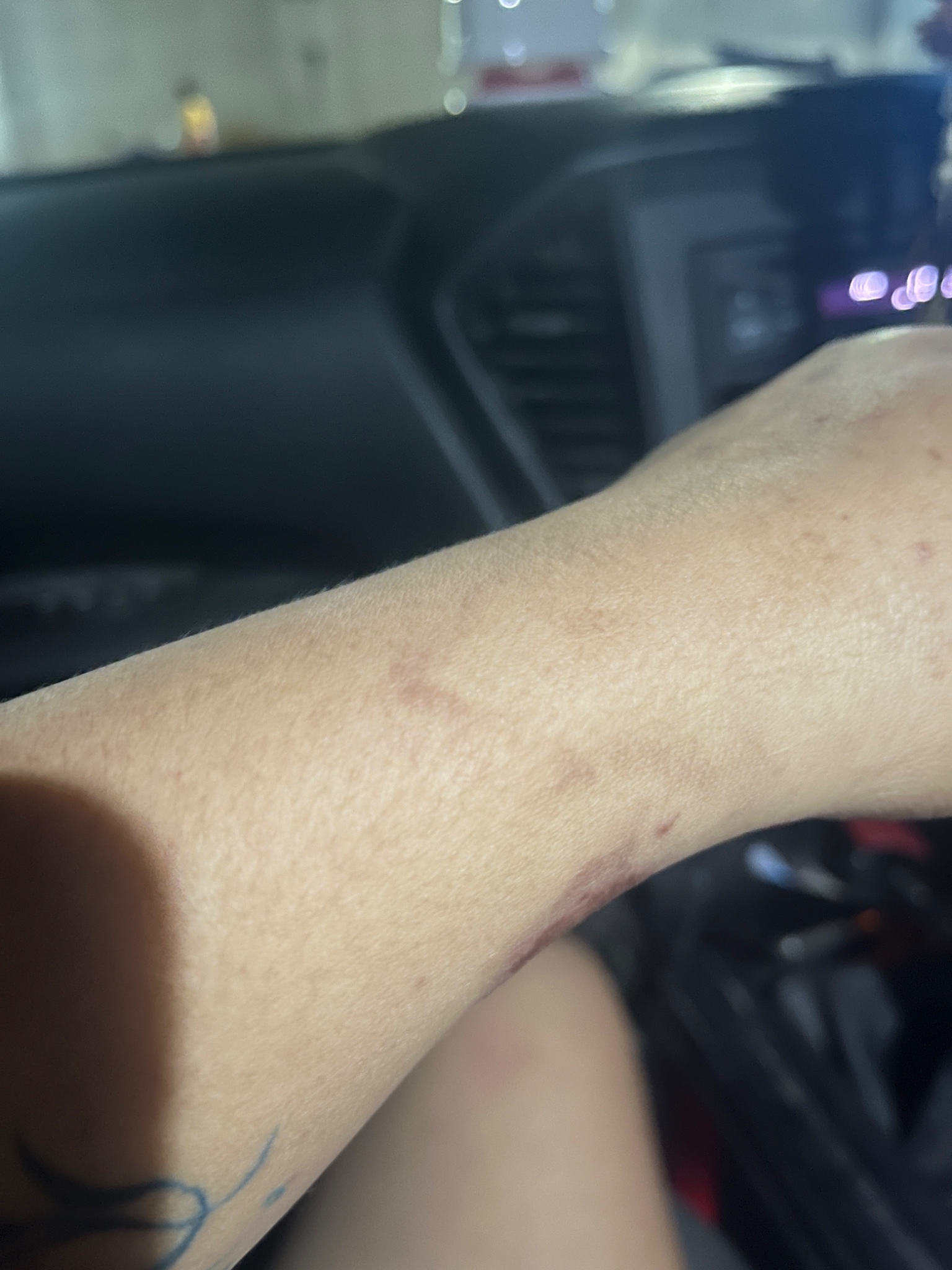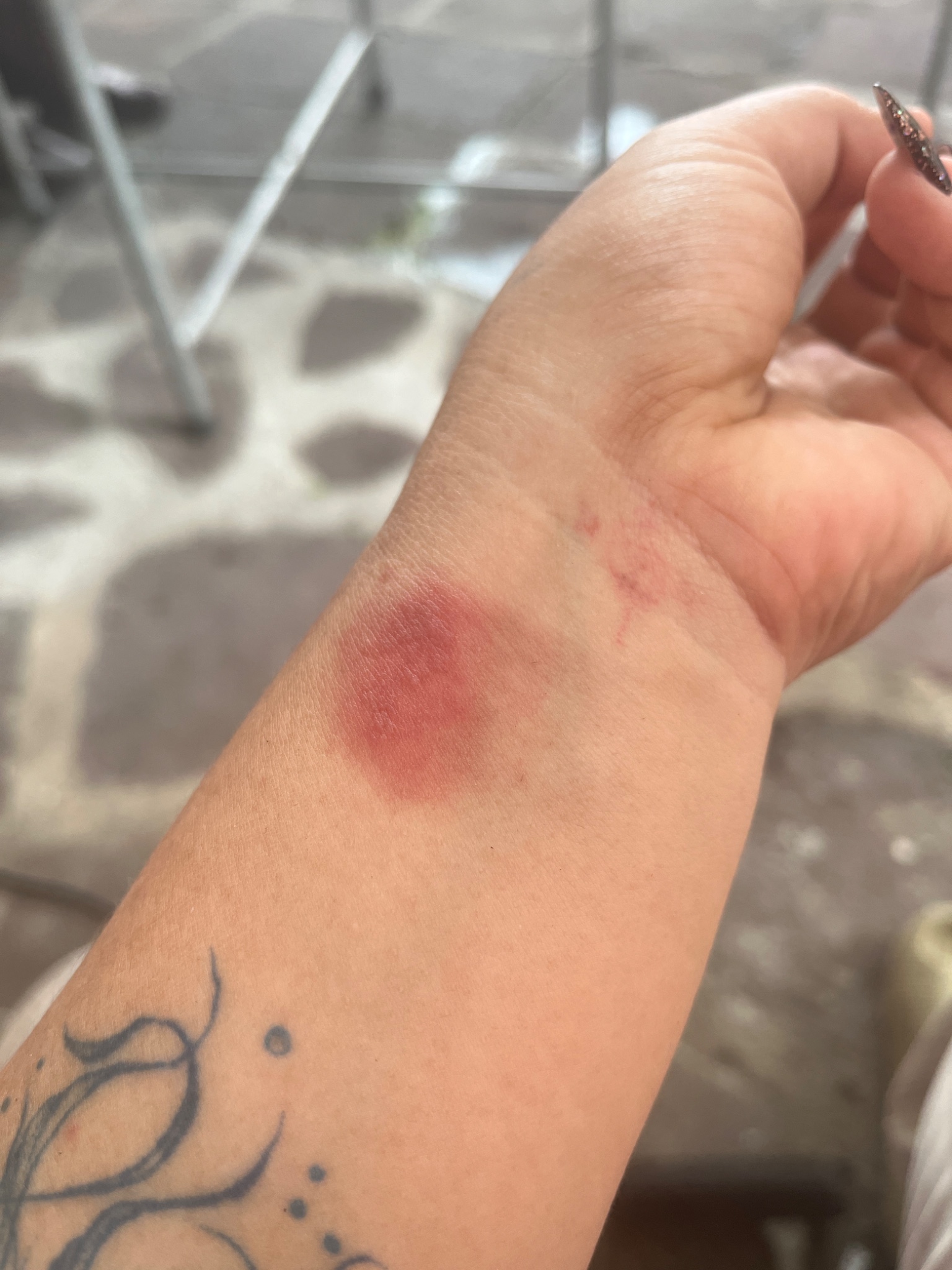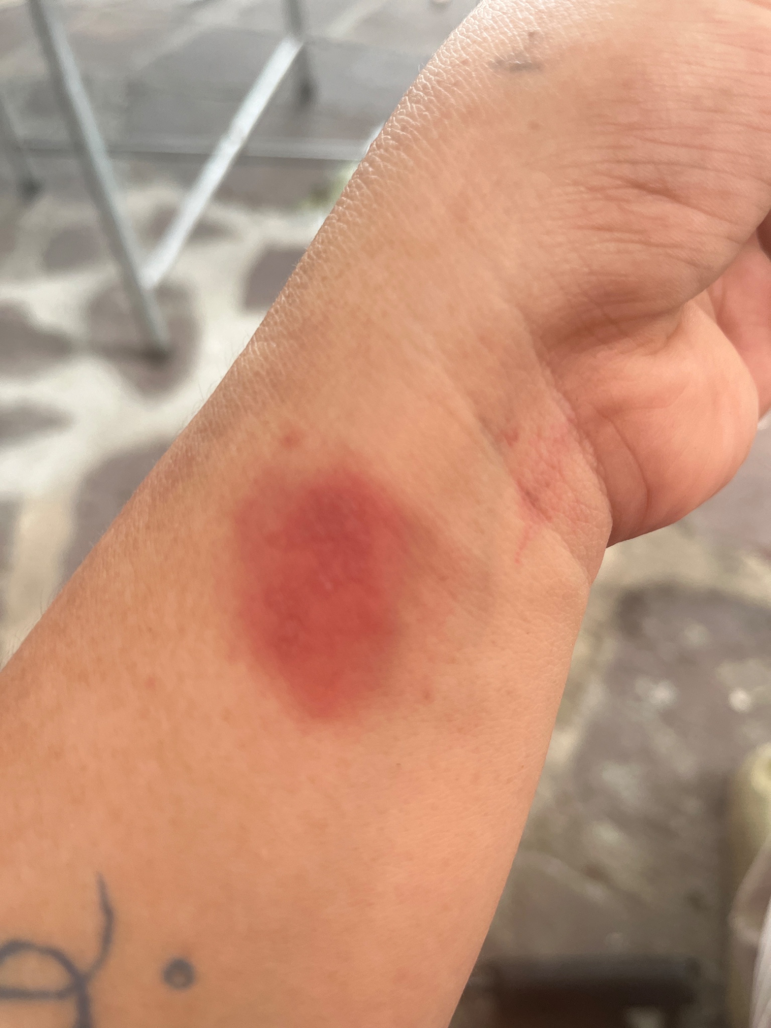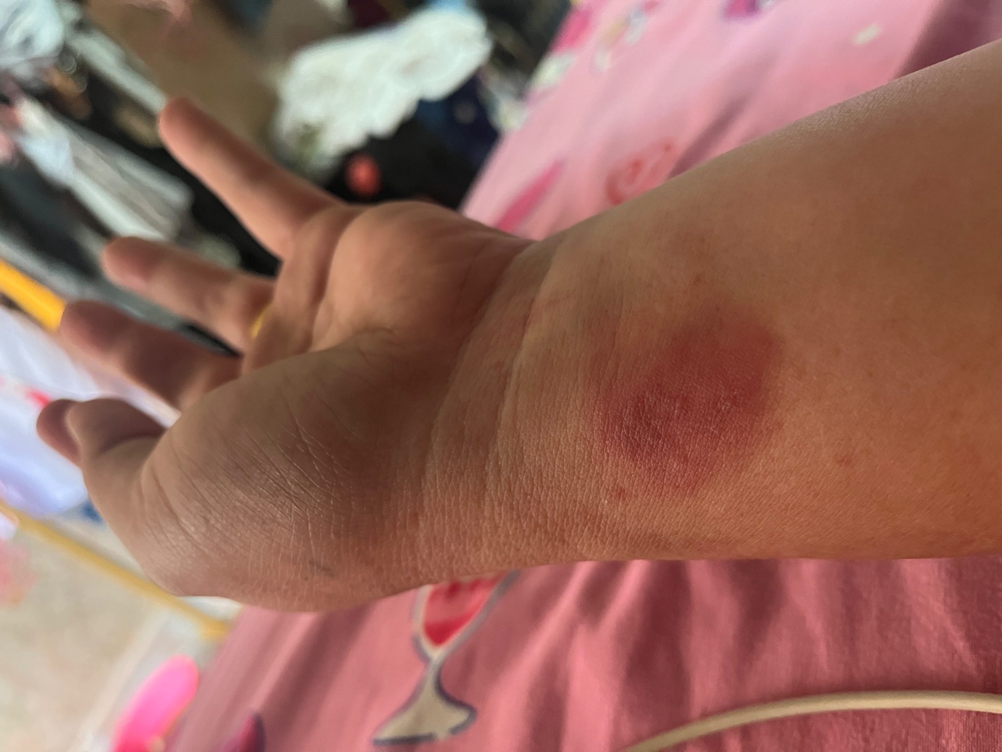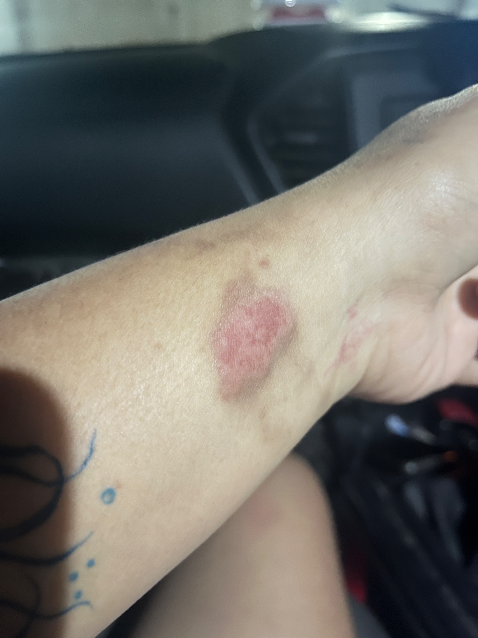 ตื่นเช้ามาเป็น ผื่นแดงแดงวงประมาณเล็บพอถัดมาอีกสองวันเป็นใหญ่ขึ้นและมีรอยเฉี่ยวช้ำ ผื่นแดงแดงวงประมาณเล็บอีกสองวันเป็นใหญ่ขึ้นและมีรอยเขียวช้ำรอบรอบ