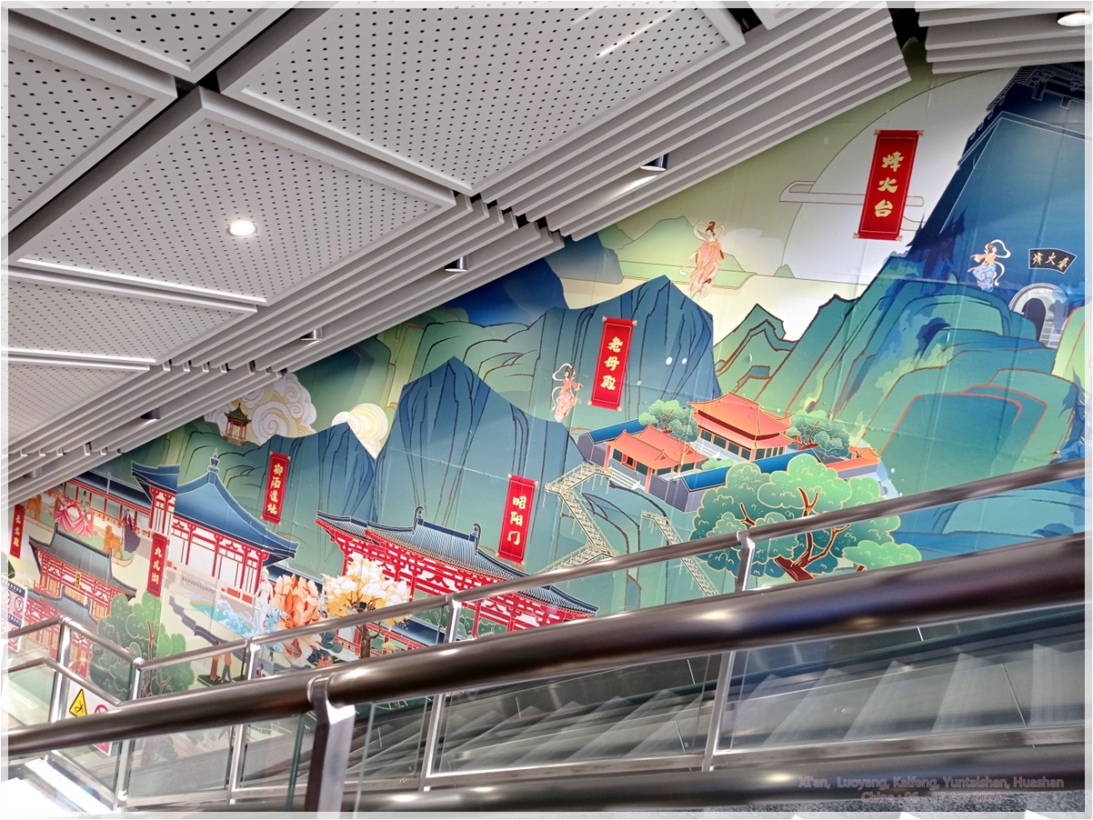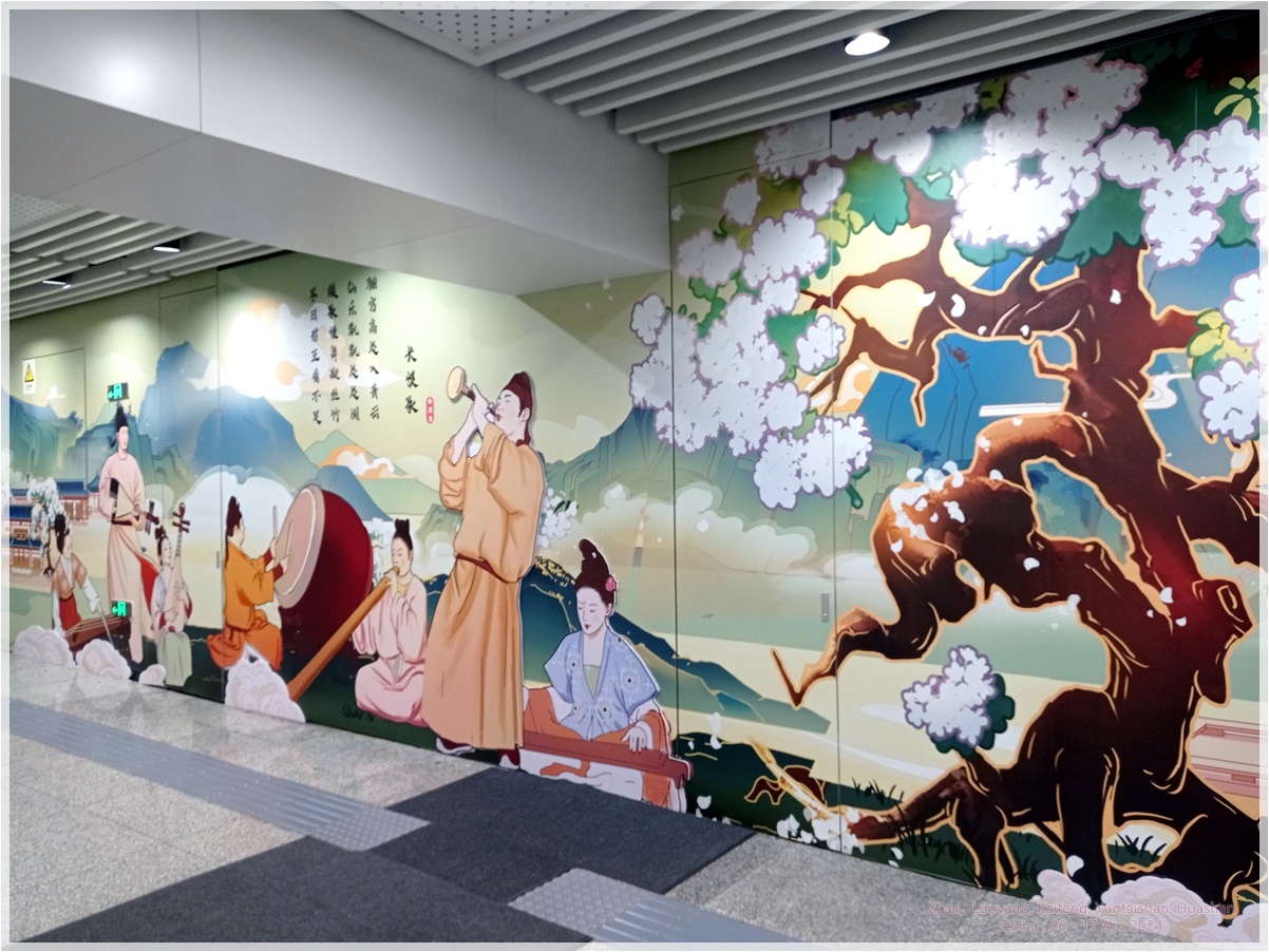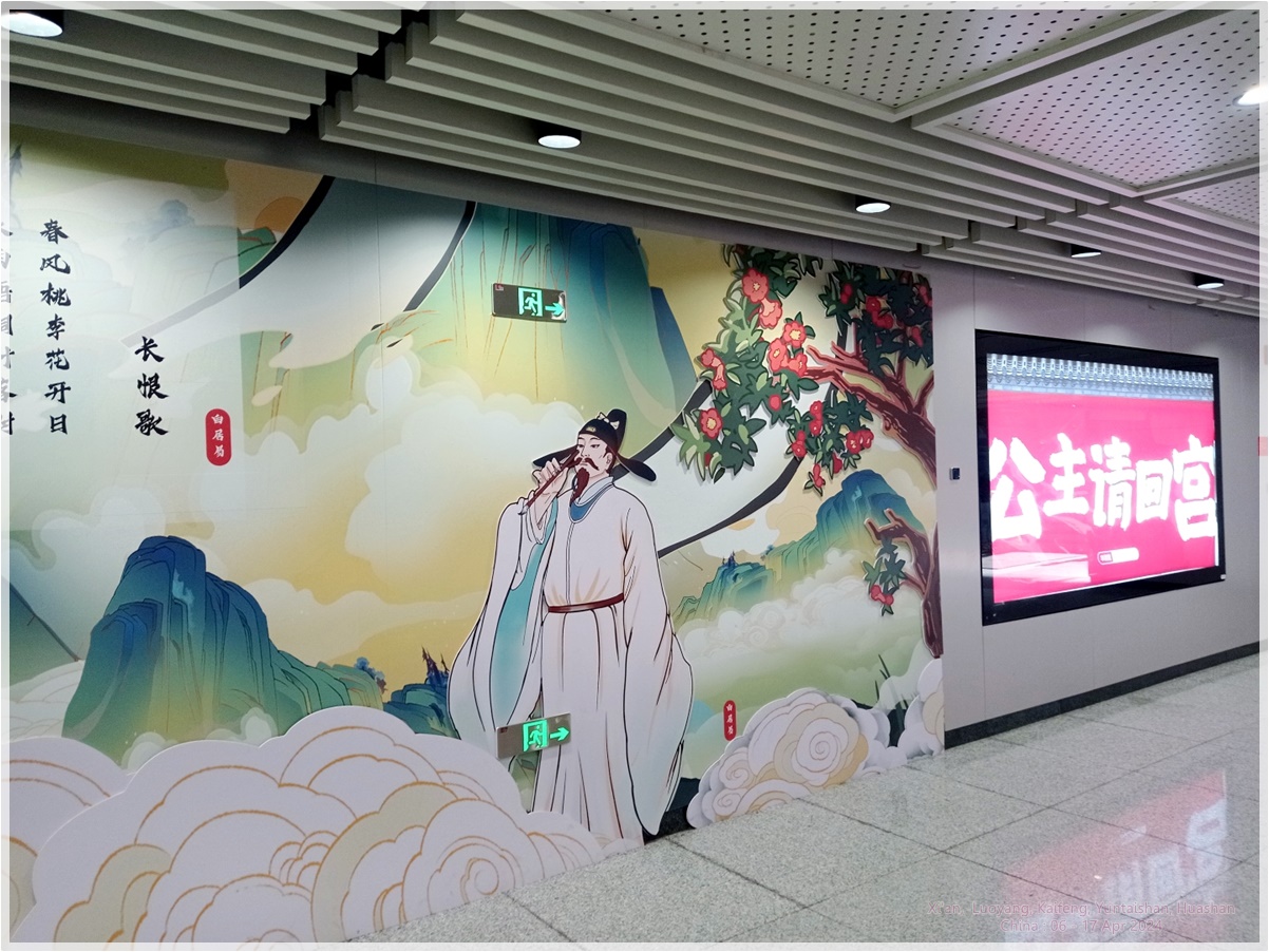 ถึงสถานี mrt หัวชิงสือ 华清池 ฮวาชิงฉือ ตอน 08.20น. ในสถานีวาดภาพกำแพง ธีมสมัยถัง