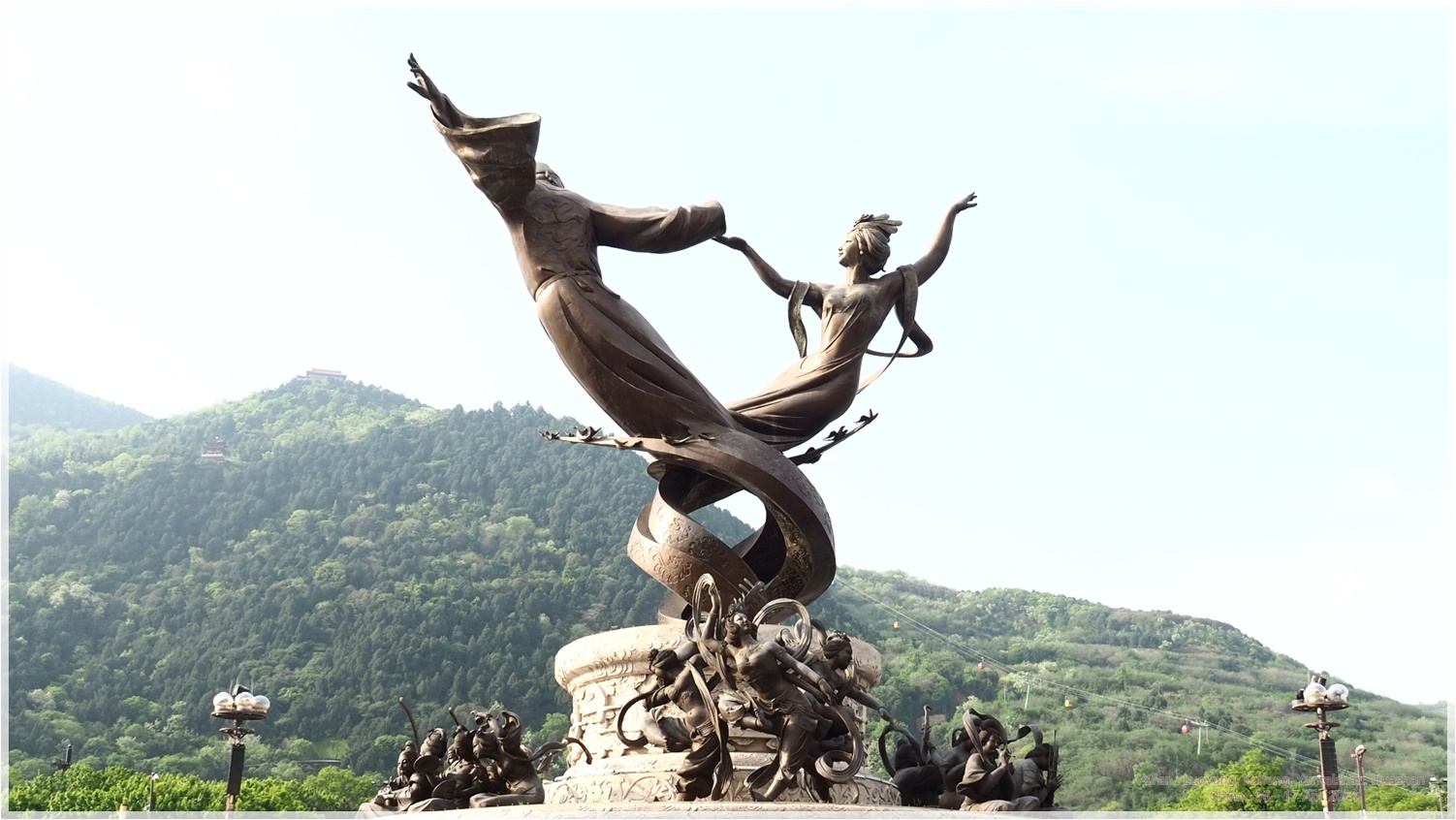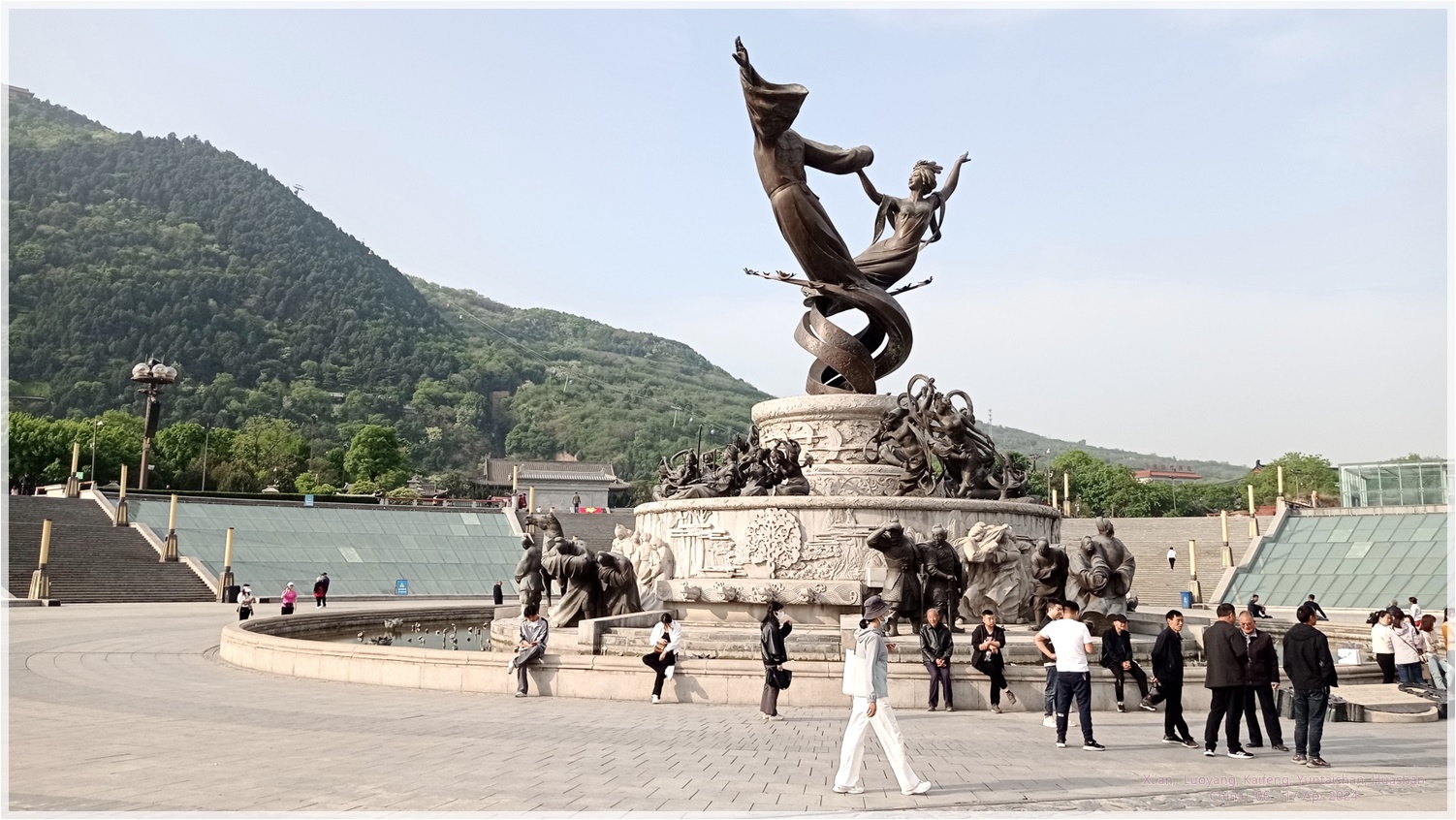 ขึ้นมาจากใต้ดินก็จะเจอรูปปั้น ฮ่องเต่ถังเสวียนจงกับพระสนมหยางกุ้ยเฟย