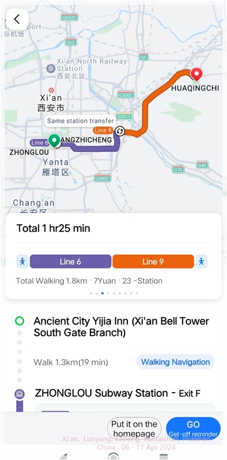 - mrt สาย9 ลงสถานี หัวชิงสือ 华清池 ฮวาชิงฉือ Huaqingchi ทางออก BหรือC