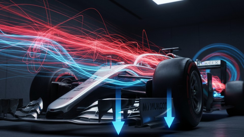 ปีกของรถ F1 ทำงานในทางตรงกันข้าม โดย สร้างแรงลง ( แรง ลง)