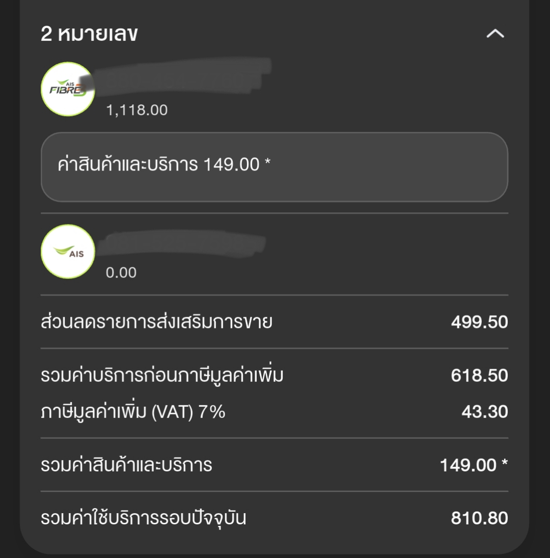 ปกติเราจ่ายแค่เดือนล่ะ 800+ นิดๆ มีบางเดือนเพิ่มเป็น1,200+ บ้าง 1,300+ บ้าง เกิดจากอะไรคะ เพราะซิมเน็ตก็ไม่ได้ใช้ มีแค่หักรายเดือนแอพ iqiyi รรายเดือนเพิ่ม อย่างล่าสุด รายละเอียดบอกยอด810 แต่ขึ้นให้ชำระ 1,200+ ยังไงกันแน่คะ มันบวกอะไรเพิ่ม ตกลงต้องจ่ายเท่าไหร่