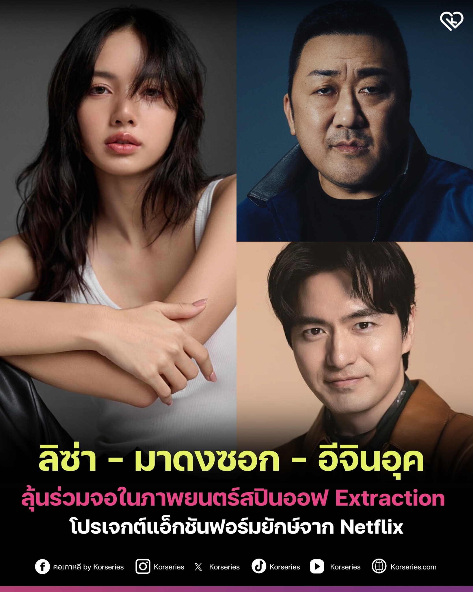 สื่อรายงานว่า ลิซ่า BLACKPINK อาจร่วมงานกับสองนักแสดง มาดงซอก - อีจินอุค ที่กำลังพิจารณารับบทนำ ใน 'Extraction: Taigo' ภาพยนตร์สปินออฟของ Extraction จาก Netflix