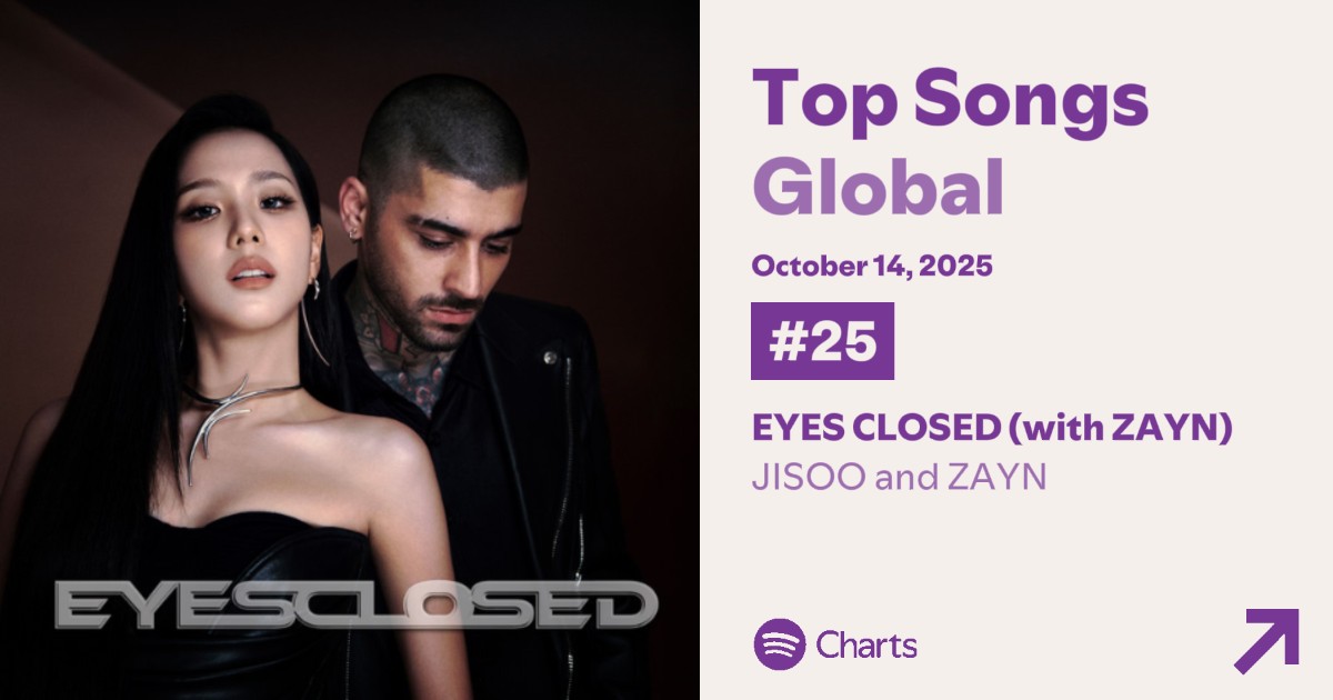 เพลง "EYES CLOSED" โดย Jisoo และ Zayn ขยับอันดับบนชาร์จ spotify global ขึ้นมา 17 อันดับด้วยยอดสตรีม 2,772,699 สตรีม