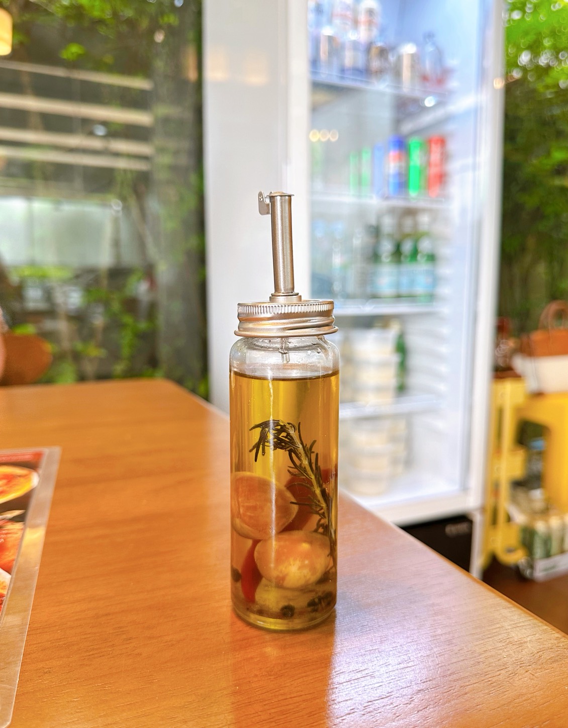 อีกหนึ่งทีเด็ดของ Mother Rabbit คือ น้ำมันมะกอกปรุงรส ที่ทางร้านเตรียมไว้ให้ราดบนพิซซ่า