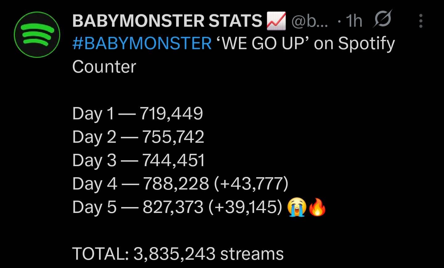 ยอด spotify ขยับขึ้นเรื่อยๆ ละสงสัยเริ่มเบื่อ MV กันแล้วสินะ ยอดเพลงทุกเพลงในอัลบั้มมียอด Stream เกิน 1 ล้านทุกเพลงแล้ว