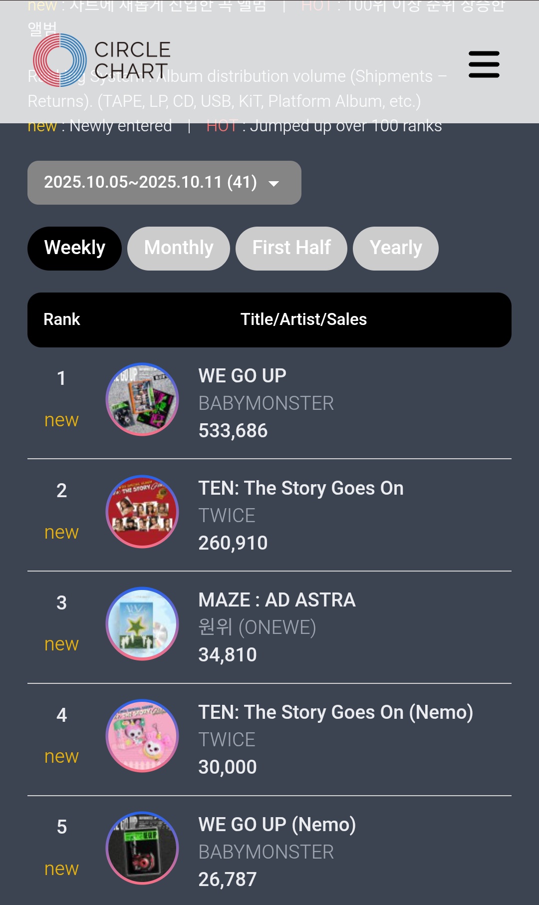 Babymosnter : Debuts at #1 on this week's Circle Album Chart