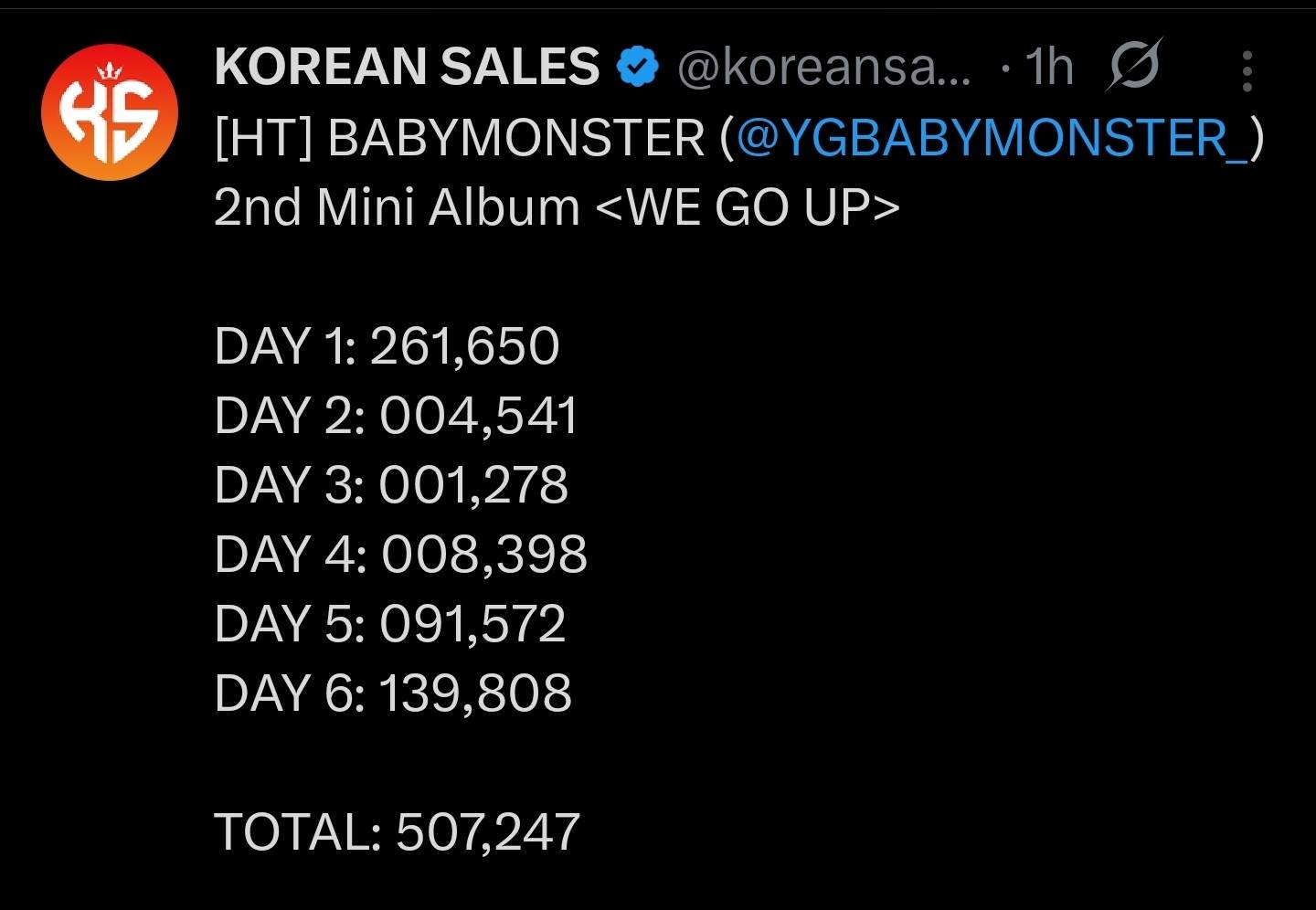 สำหรับยอดขายของอัลบั้ม We Go Up ตอนนี้ขึ้นอันดับ 1 ของ Circle Album Chart ด้วยยอดขาย 533,686