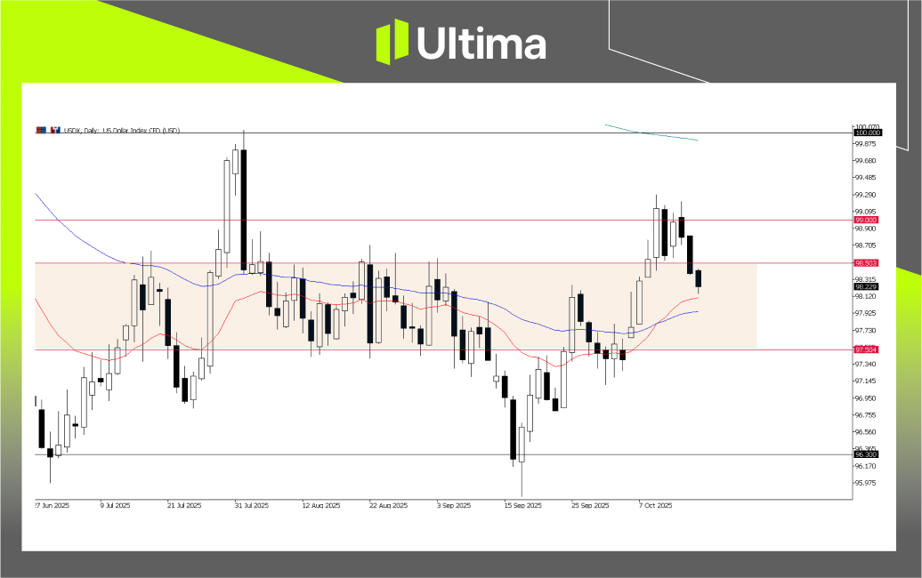 ในเชิงเทคนิค ดัชนีดอลลาร์สหรัฐฯ (USDX) ได้ร่วงลงต่ำกว่าแนวรับสำคัญที่ 98.50 นี่คือสัญญาณเชิงลบที่บ่งชี้ว่าดอลลาร์อาจกำลังเข้าสู่ช่วงการปรับฐานที่ลึกขึ้น