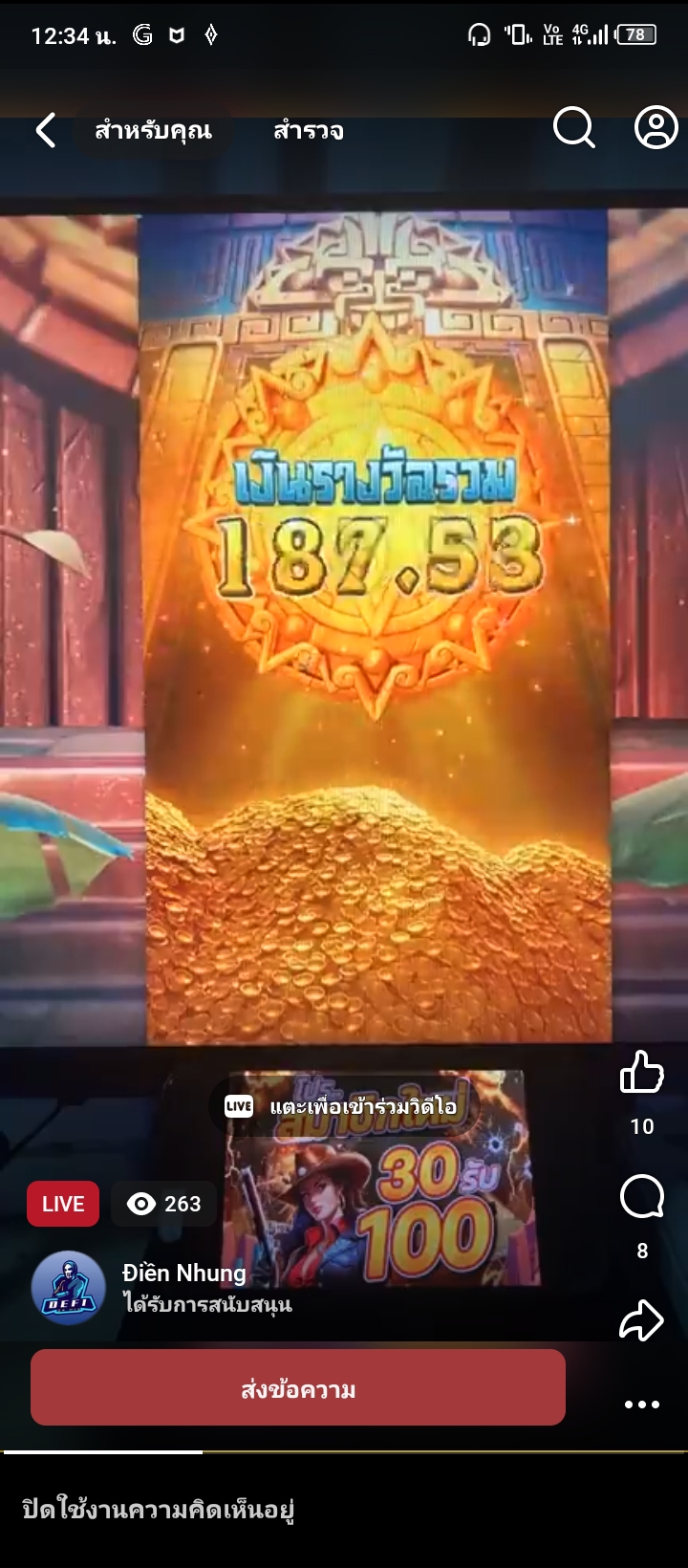 วีดีโอไลฟ์ชวนเล่นพนัน ขึ้นมาแล้ว3รอบ