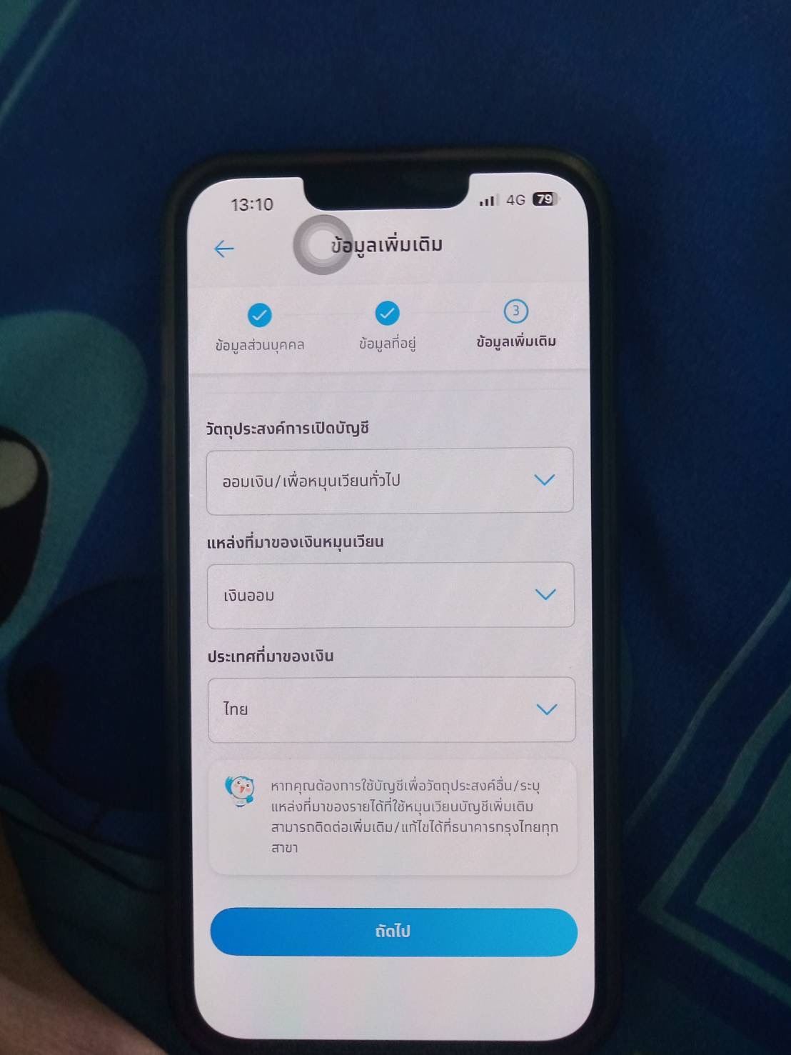 ช่วยด้วยค่ะแอปไม่ยอมให้กดถัดไป ไปยืนยันตัวตนมาเสร็จแล้วมาติดอยู่อีตรงข้อมูลเพิ่มเติมอีก