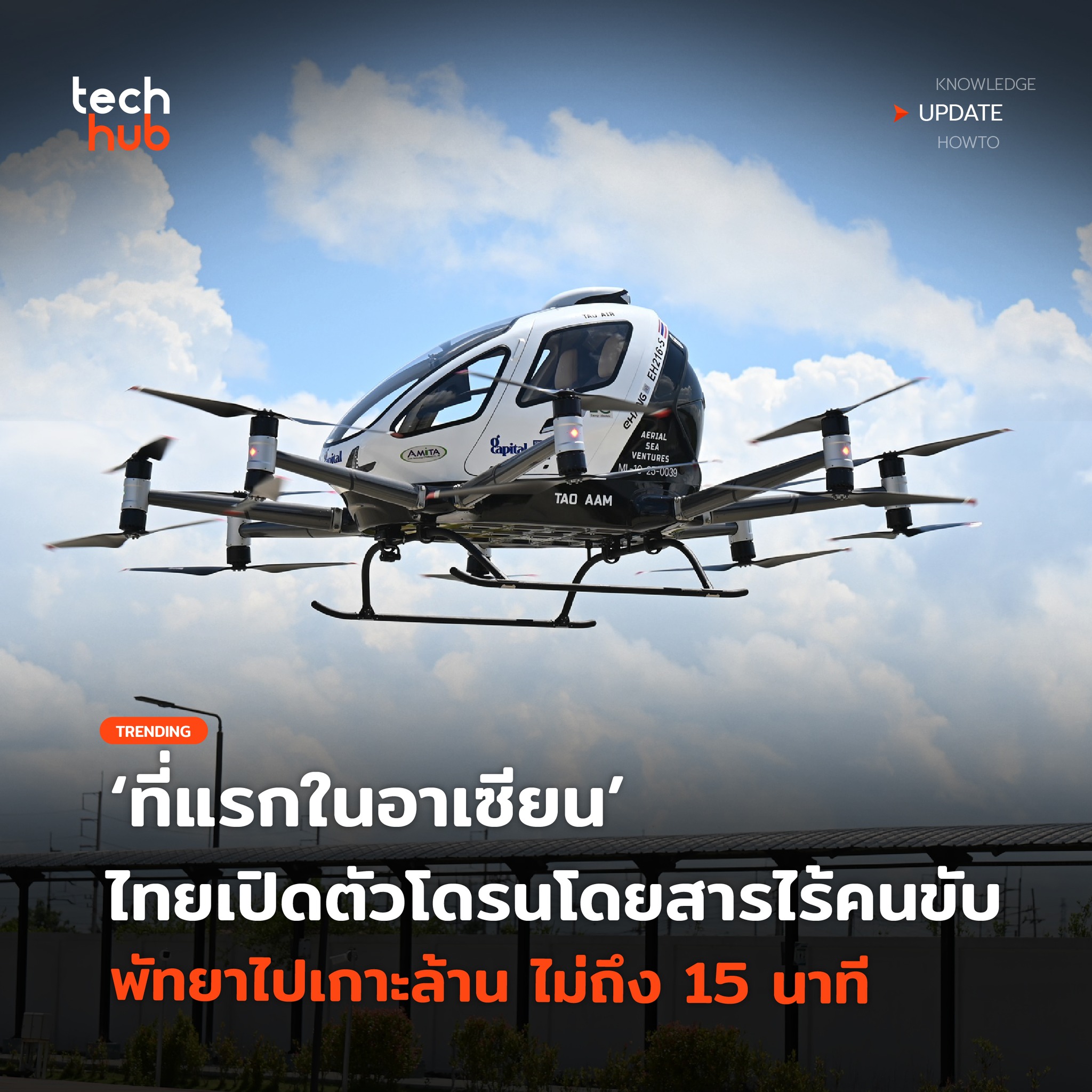สิ่งนี้จะสร้างประสบการณ์การเดินทางที่รวดเร็วและเป็นมิตรต่อสิ่งแวดล้อม ความเคลื่อนไหวครั้งสำคัญนี้เป็นความร่วมมือระหว่างภาคเอกชนอย่าง บริษัท จี แคปปิตอล จำกัด (มหาชน) หรือ GCAP กับผู้ผลิตโดรนชั้นนำ EHang ภายใต้การสนับสนุนจาก สำนักงานการบินพลเรือนแห่งประเทศไทย (CAAT) ที่จะผลักดันให้ไทยเป็นศูนย์กลางของเทคโนโลยีการเดินทางทางอากาศขั้นสูง (Advanced Air Mobility)