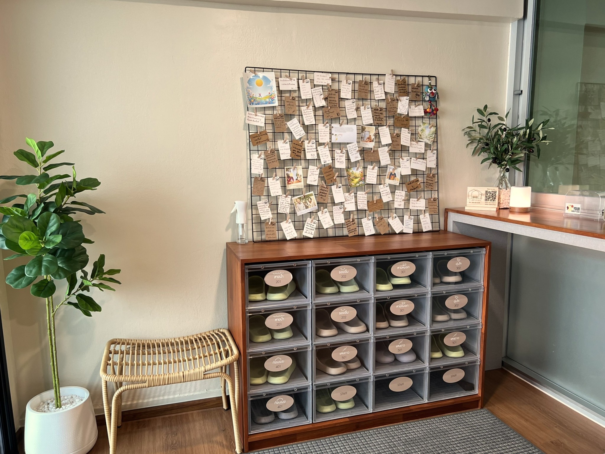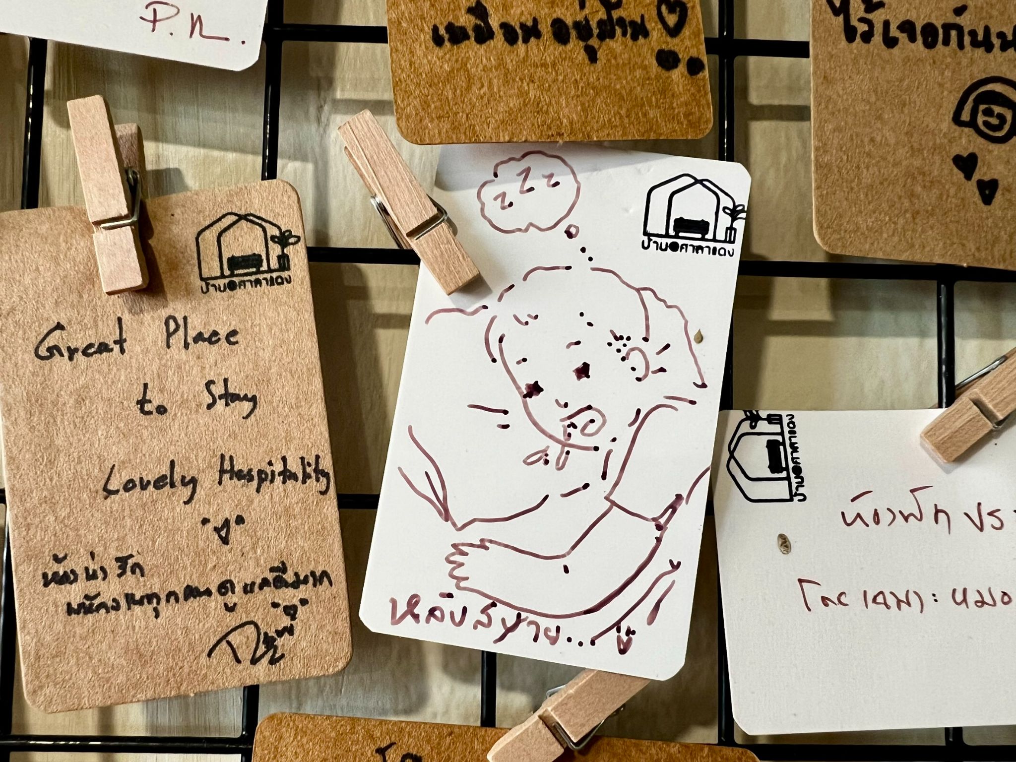 รอบนี้ได้เห็นบอร์ดข้อความ ที่นี่เค้าเรียกว่า “บอร์ดชื่นใจ” มีชื่อเรียกด้วยน่ารักเนอะ แขกแต่ละคนที่มาพักเค้าจะเขียนให้กำลังใจที่พักกันไว้ด้วย อ่านไปก็ยิ้มไป น่าชื่นใจแทนพี่เจ้าของจริงๆ สมชื่อบอร์ดชื่นใจแหล่ะ