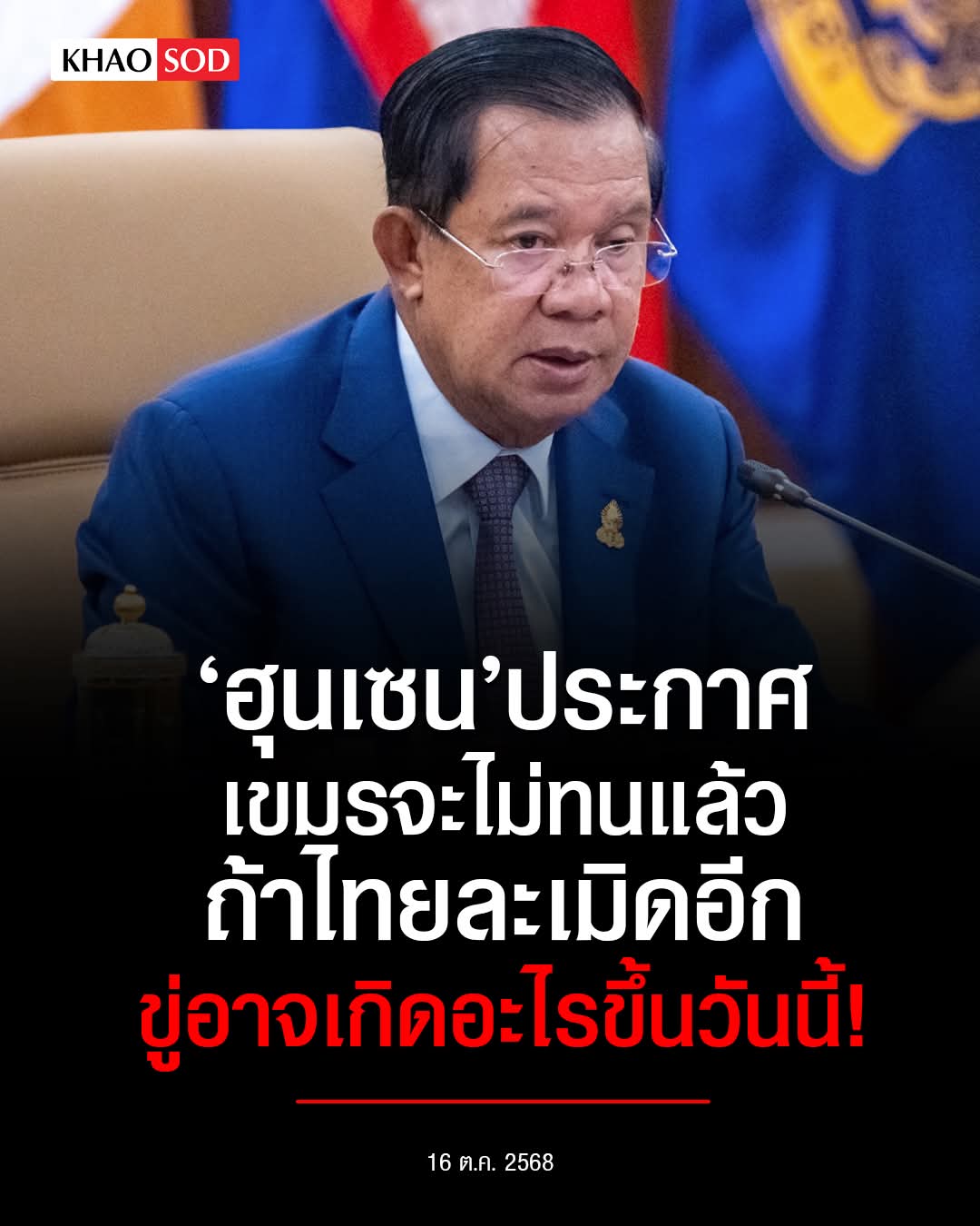 ด่วน! สื่อท้องถิ่นกัมพูชา รายงานคำพูด สมเด็จฮุนเซน ประธานวุฒิสภากัมพูชา ประกาศ “จะไม่อดทนอีกต่อไป” หากไทยยังละเมิดกัมพูชาอีกครั้ง และว่าอาจเกิดสถานการณ์เลวร้ายขึ้นได้ในวันนี้