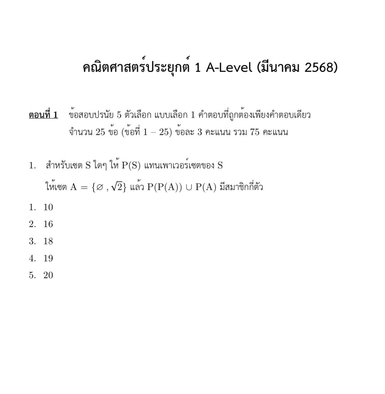 โจทย์โอเน็ตคณิตศาสตร์