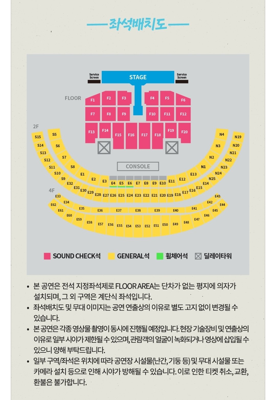 - ที่นั่งชมคอนเสิร์ตตรงพื้นสนามทั้งหมด เป็น VIP ทั้งหมด สามารถเข้าดูในรอบซาวน์เช็คได้ด้วย