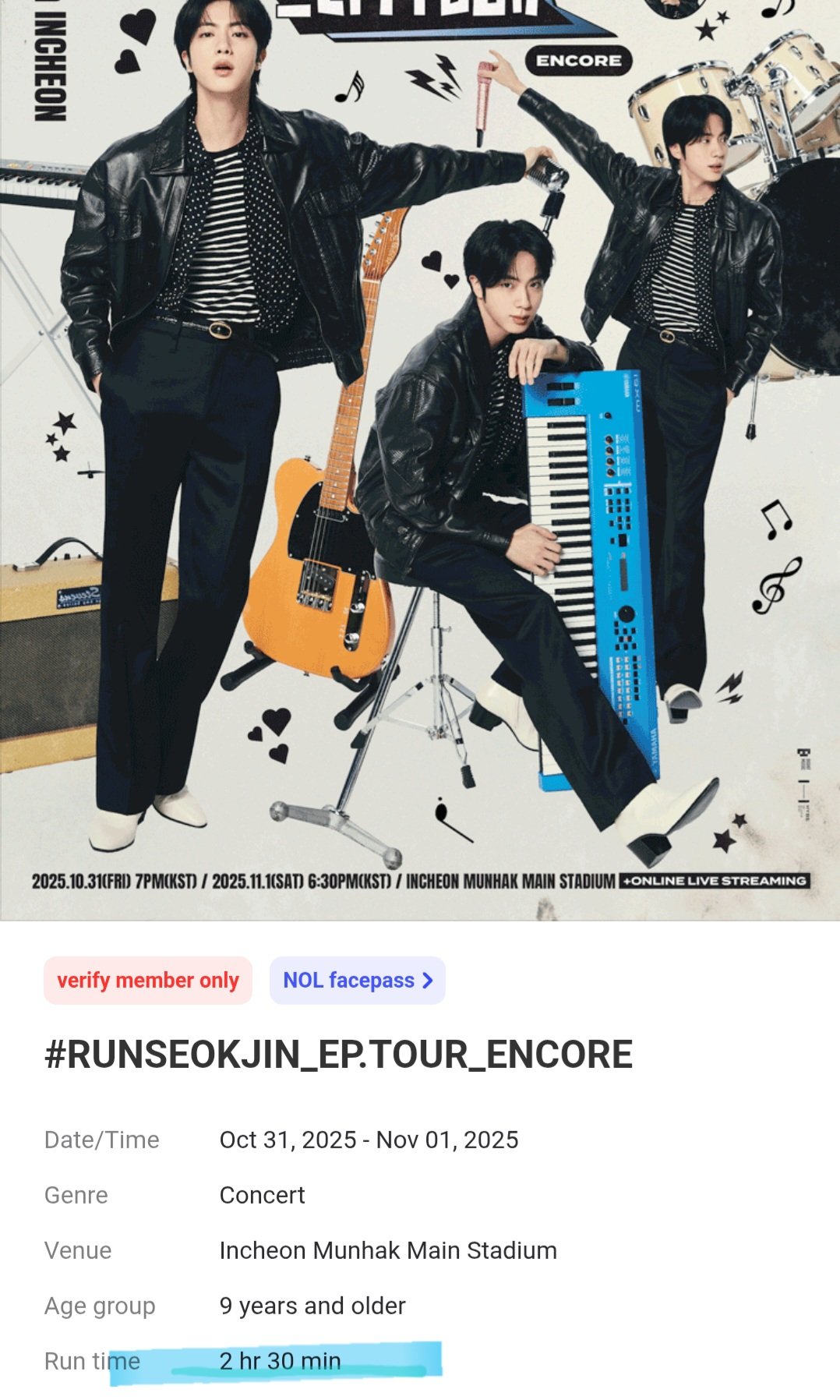 การจำหน่ายตั๋วคอนเสิร์ตอังกอร์ของจิน BTS ก็ได้รับการเปิดเผยแล้ว (การจำหน่ายตั๋วจะเริ่ม 11 วันก่อนคอนเสิร์ต)