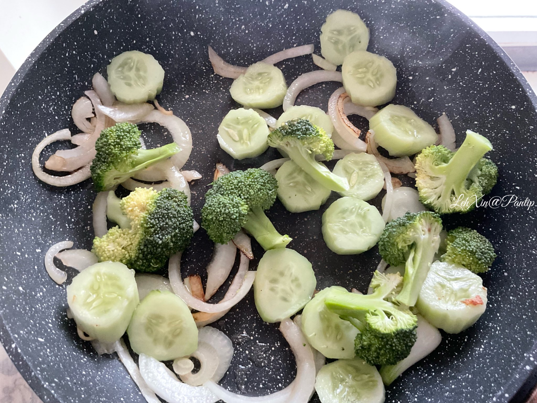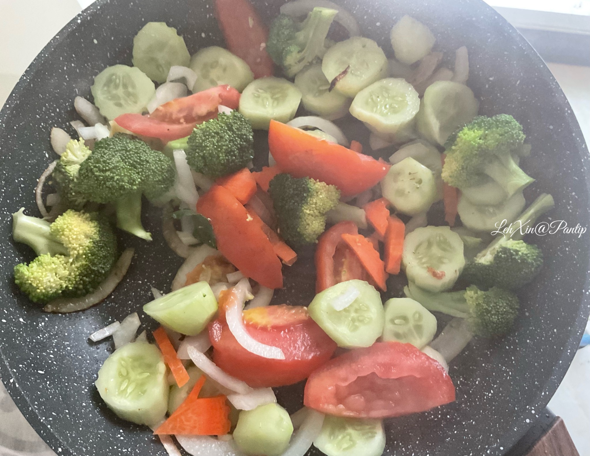 ผักที่หาได้ ในตู้เย็นมี แครอท บรอกโคลี เลยเอามาใส่ด้วย