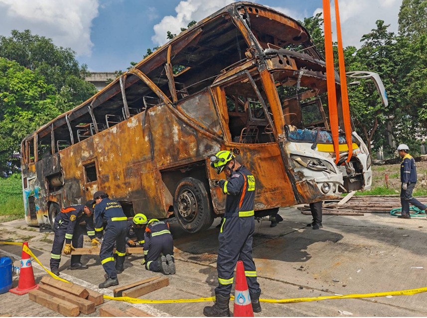 ทีมกู้ภัยจาก กทม. ขนคนเครื่องมือและอุปกรณ์มาช่วยยกรถและอำนวยความสะดวกให้พวกผมทำงานได้อย่างปลอดภัย