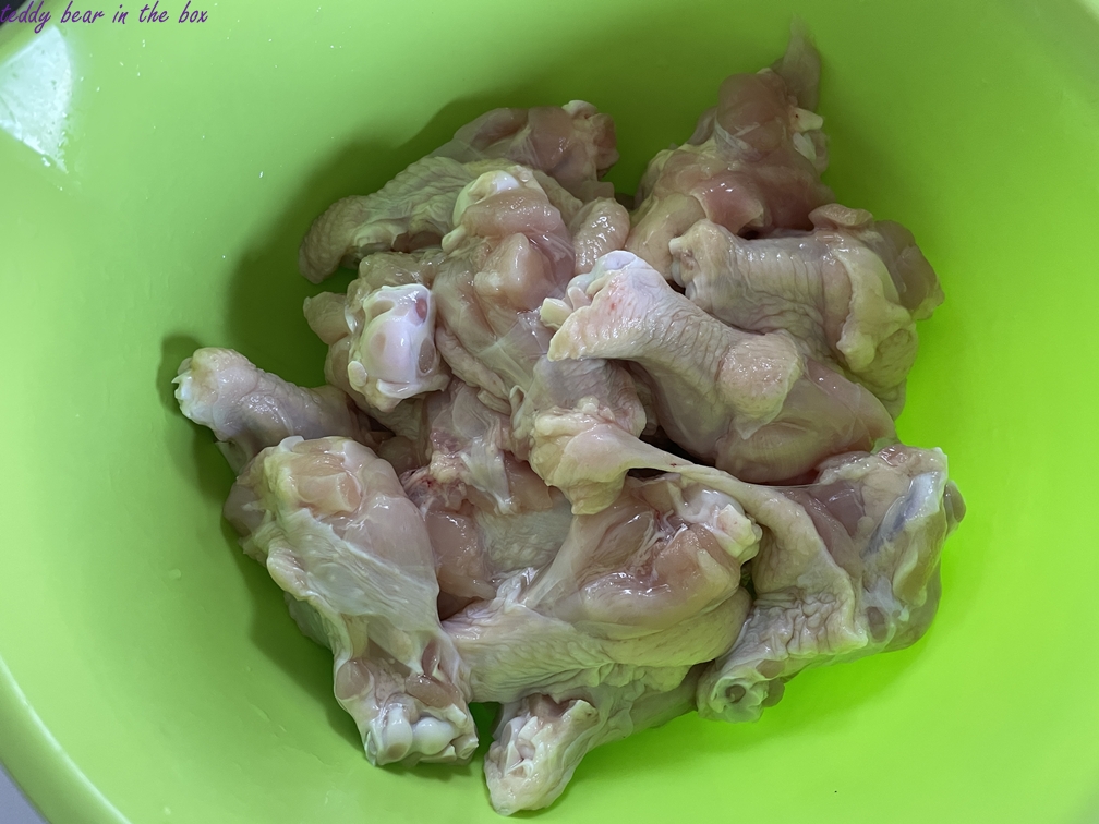 ใส่ปีกไก่ลงคลุกให้ทั่ว