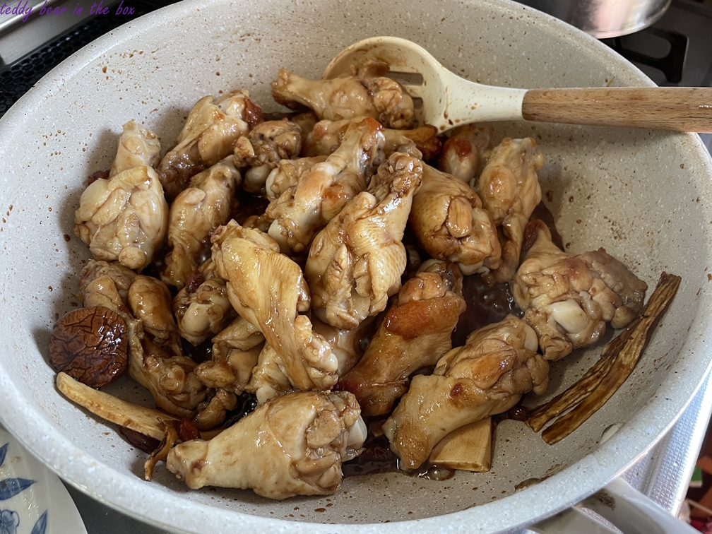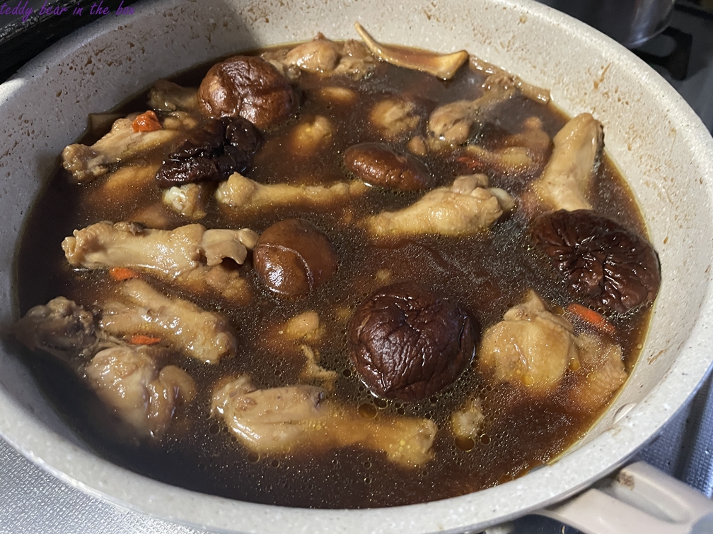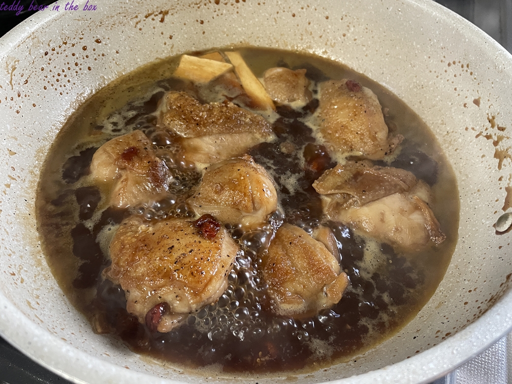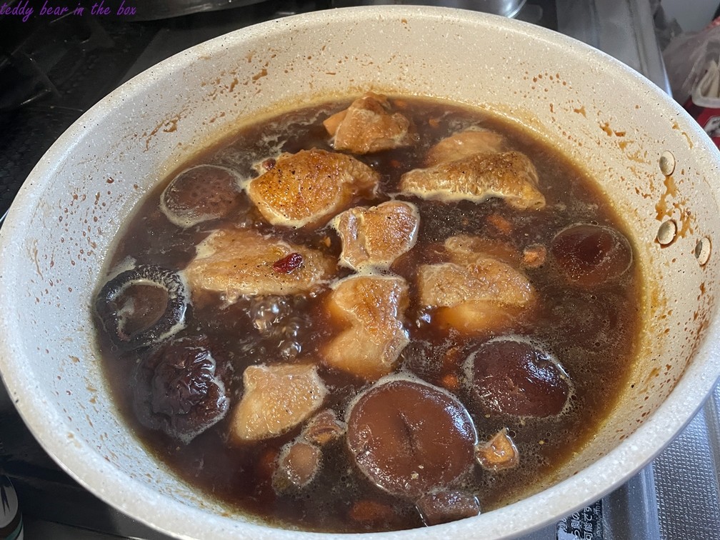 ใส่เห็ดหอมแช่น้ำให้นุ่ม เคี่ยวให้เข้าเนื้อ