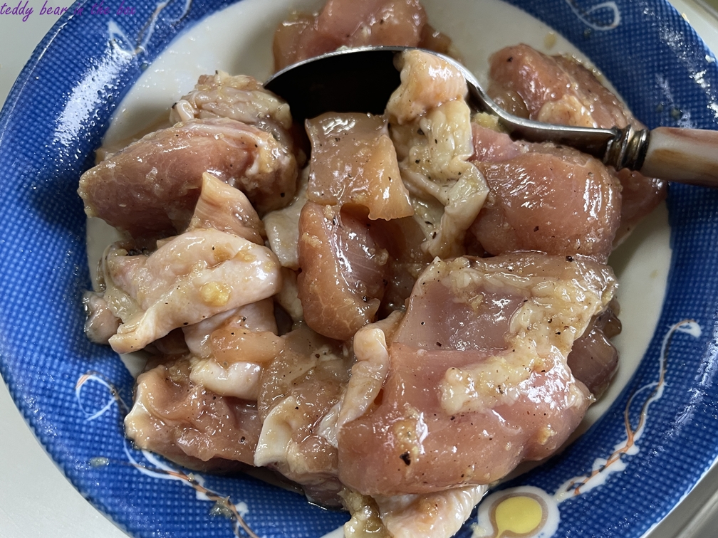 หั่นเนื้อไก่ ชิ้นพอคำไม่ใหญ่มาก