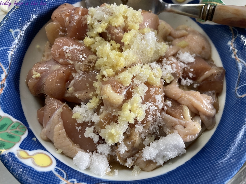 ตามวิธีที่ชอบส่วนตัวคือ ล้างไก่ด้วยเกลือดับคาว แล้วแช่น้ำผสมเกลือ 10 นาที